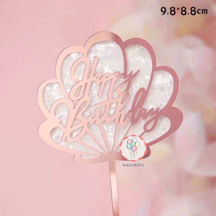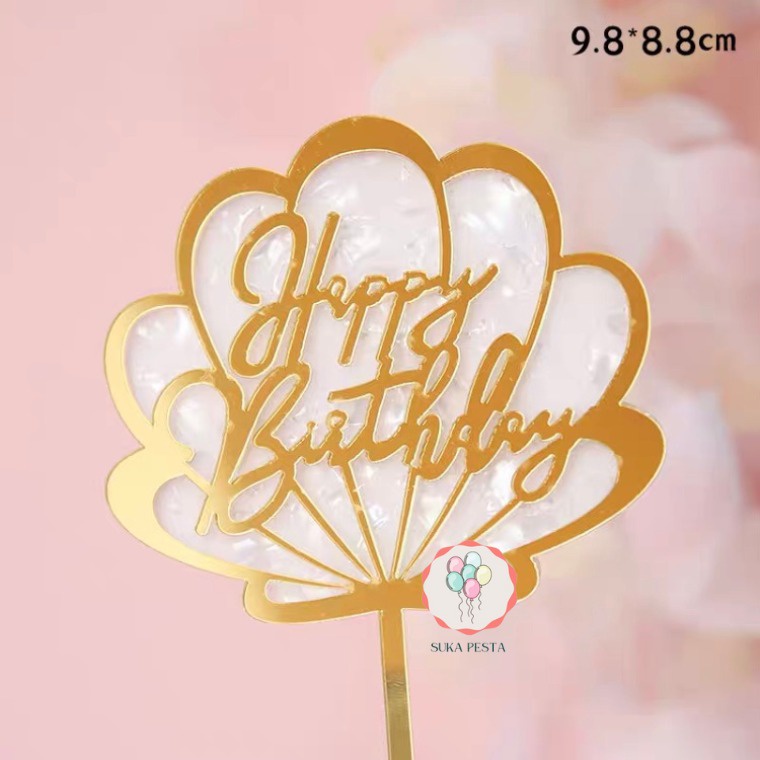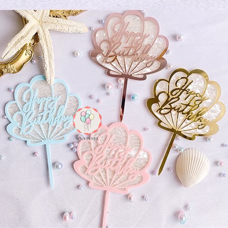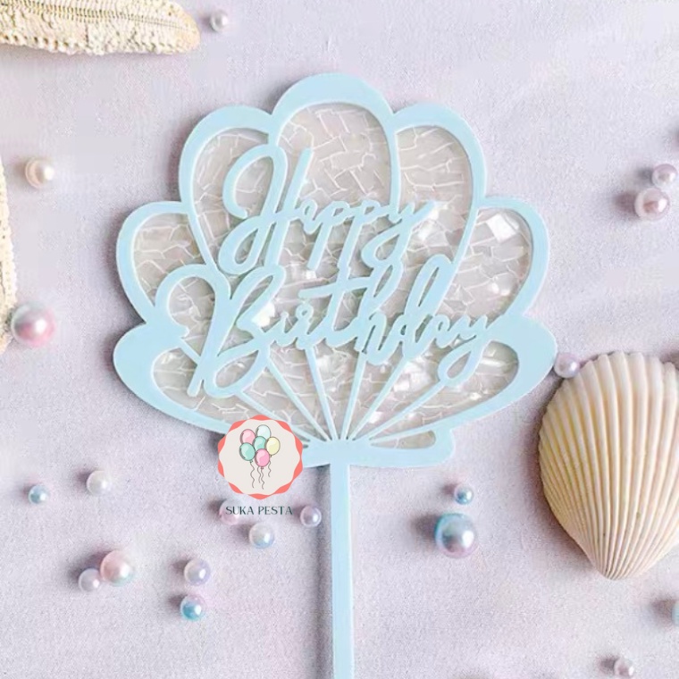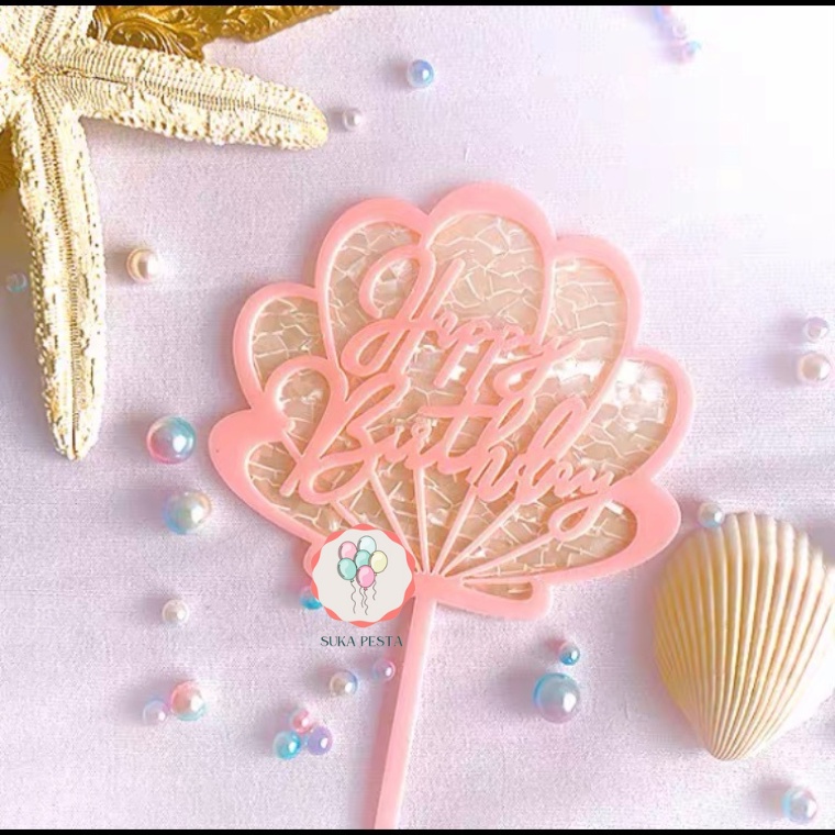 CAKE TOPPER HBD MOTIF KERANG / HIASAN KUE ACRYCLIC / CAKE TOPPER AKRILIK