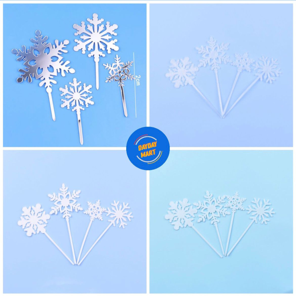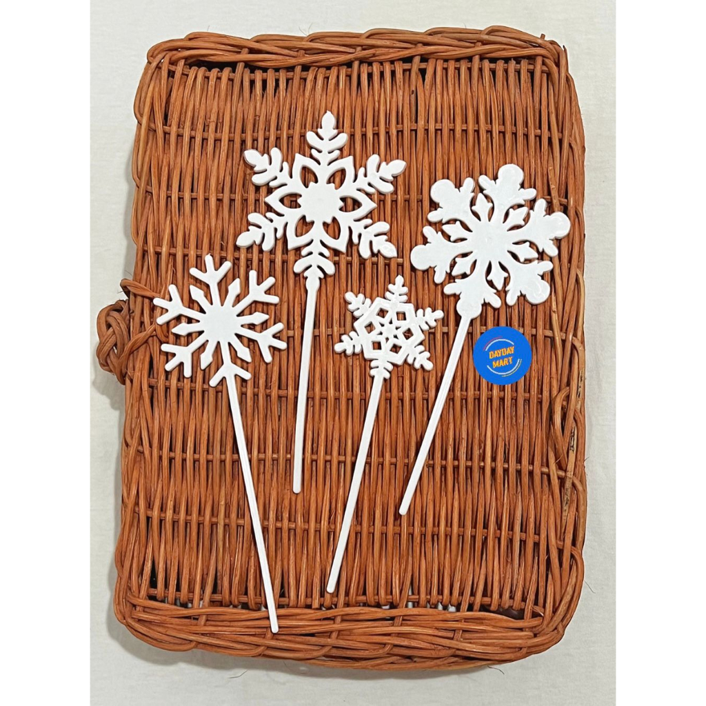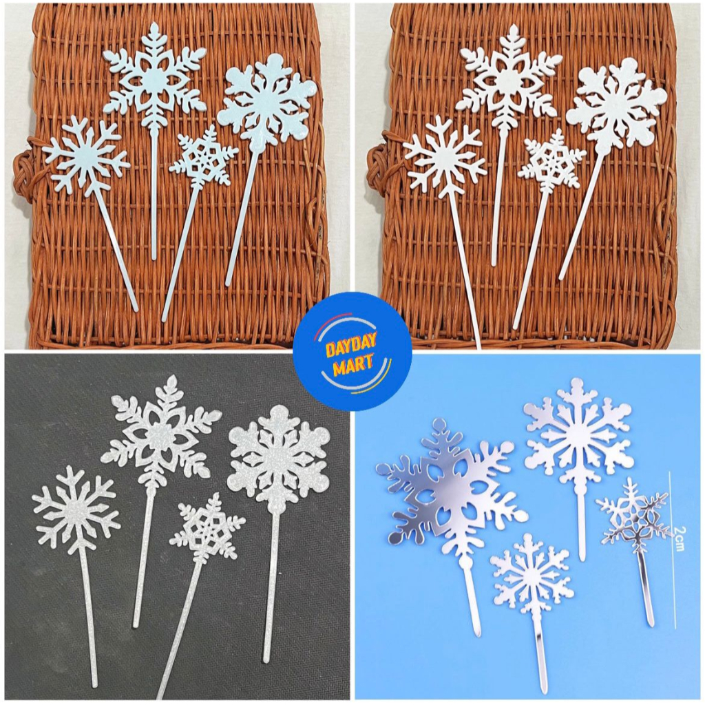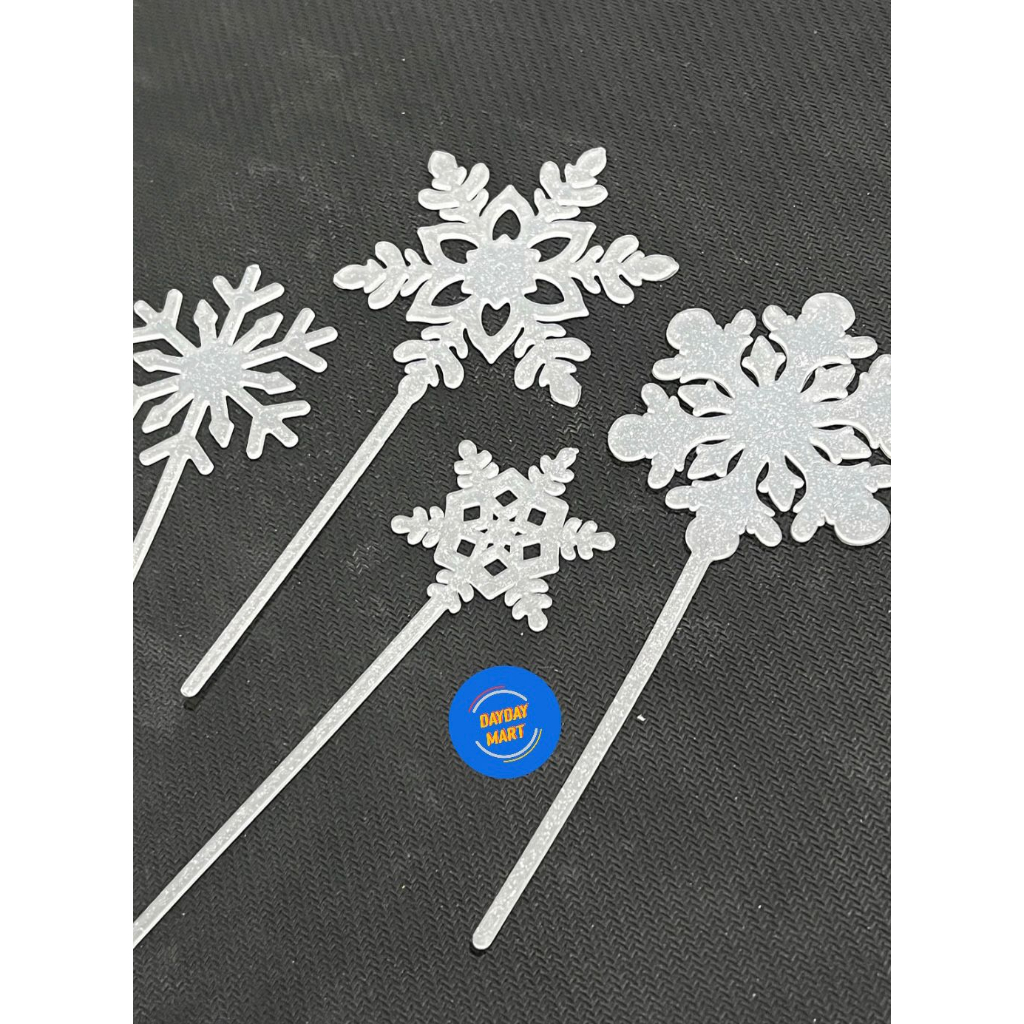 CAKE TOPPER MOTIF SALJU / CAKE TOPPER SNOWFLAKES / DEKORASI KUE FROZEN / AKSESORIES KUE FROZEN