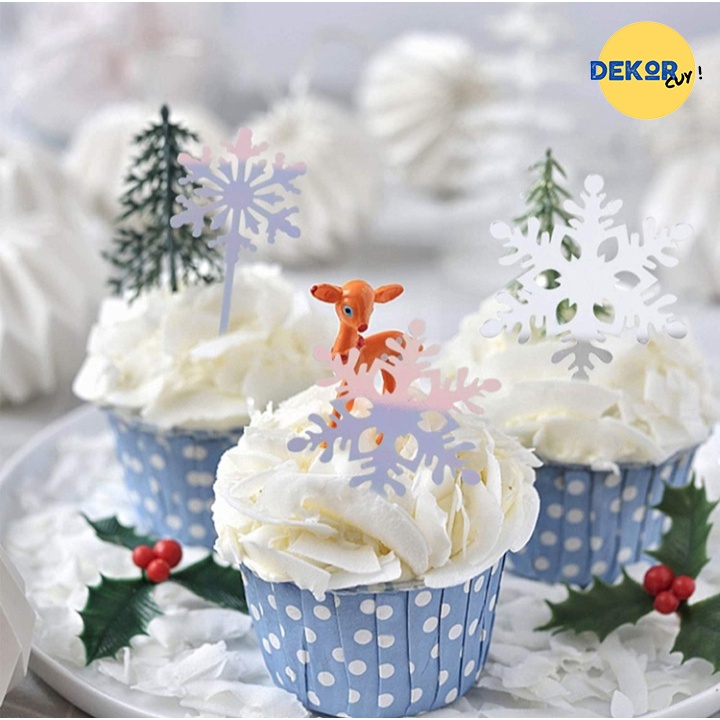 CAKE TOPPER MOTIF SALJU / Cake topper Snowflakes / Dekorasi Kue Frozen / Aksesories Kue Ulang Tahun Salju Frozen