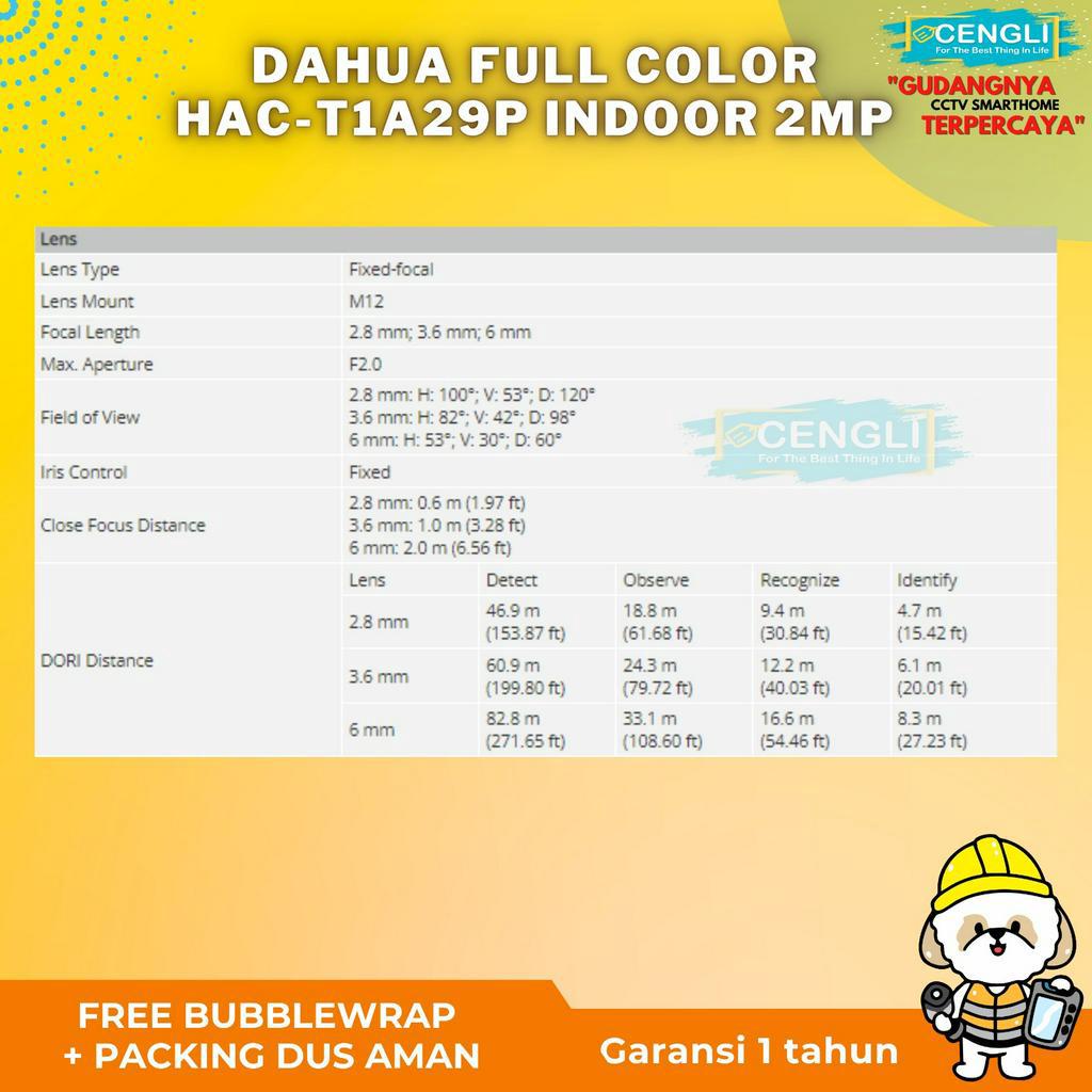 CAMERA CCTV FULL COLOR DAHUA COOPER 2MP DH-HAC-T1A29P INDOOR DAHUA