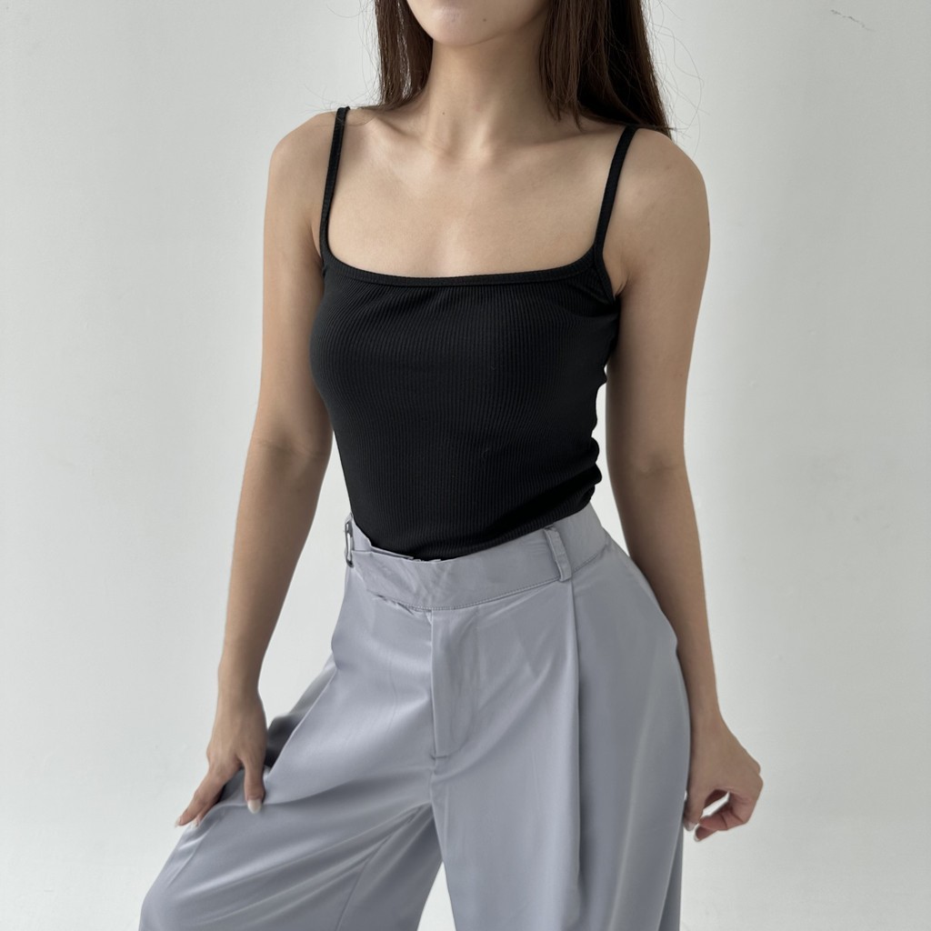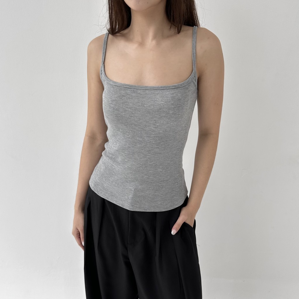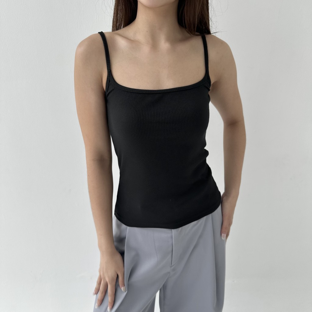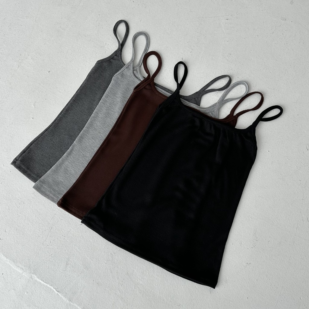 CAMI TOP - Tanktop Ribbed Knit Spaghetti Square Tank Kaos Racer Tee Basic Crop Top Summer Atasan Wanita Rib Posha