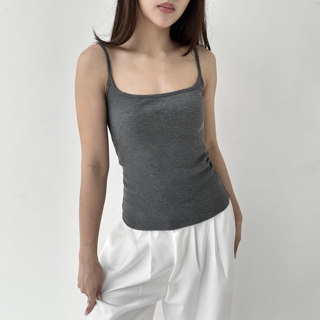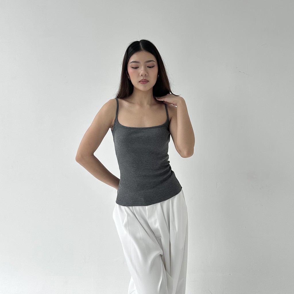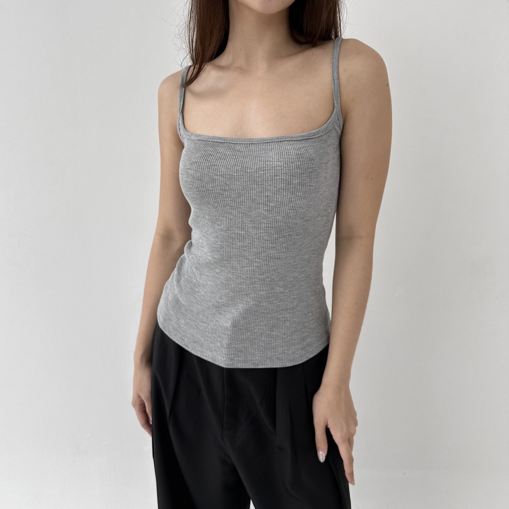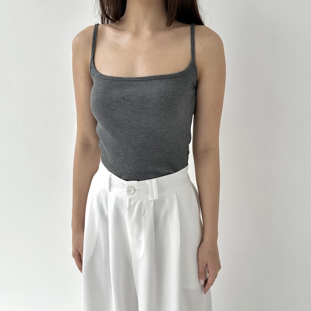 CAMI TOP - Tanktop Ribbed Knit Spaghetti Square Tank Kaos Racer Tee Basic Crop Top Summer Atasan Wanita Rib Posha