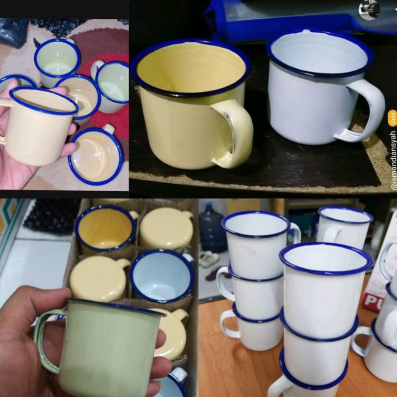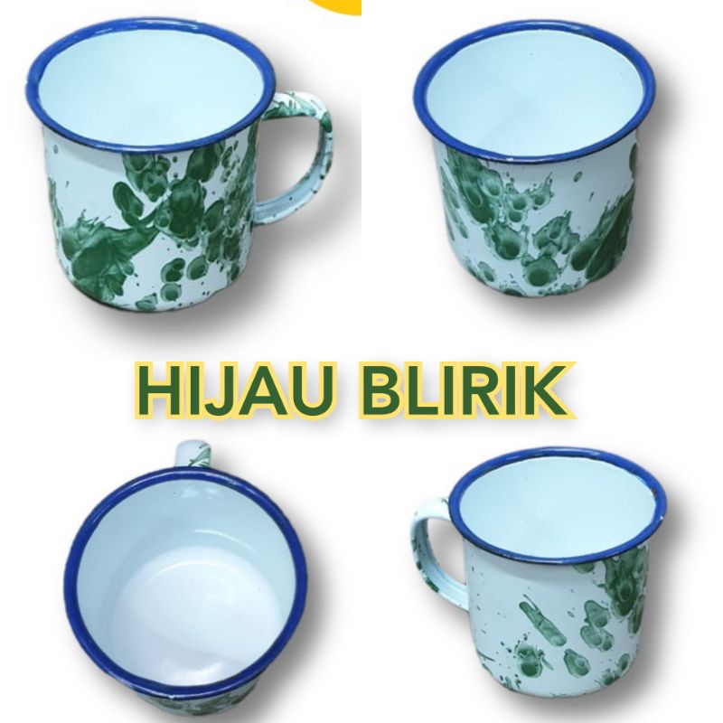 CANGKIR MUG ENAMEL POLOS BLIRIK BURIK / CANGKIR SENG CANGKIR KALENG ANTIK KUNO JADUL