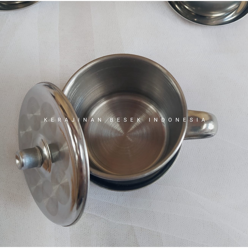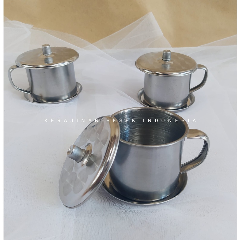 CANGKIR SET ENAMEL // CANGKIR + TUTUP+ TATAKAN// Cangkir stainless // Cangkir murah// Cangkir jaman dulu// Cangkir teh// Cangkir kopi