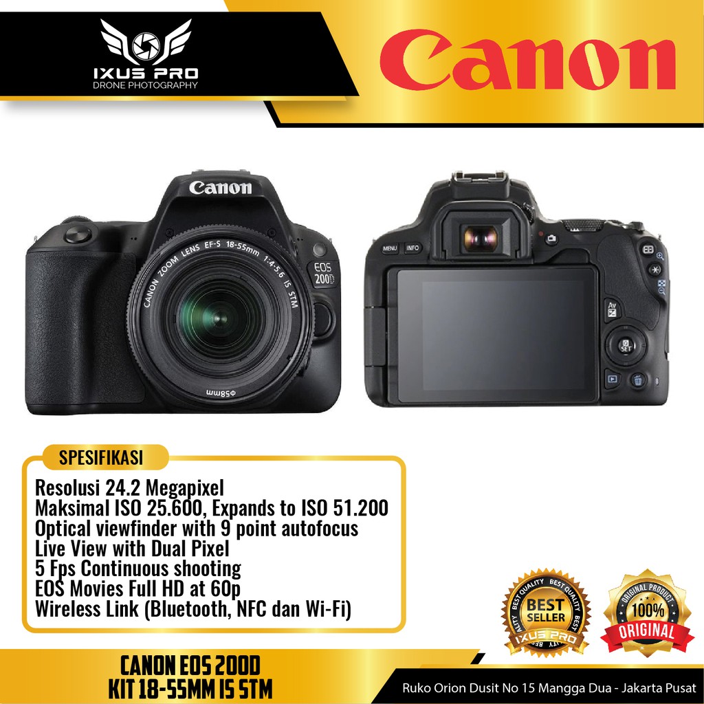 CANON EOS 200D KIT 18-55MM IS STM - KAMERA SLR CANON WIFI