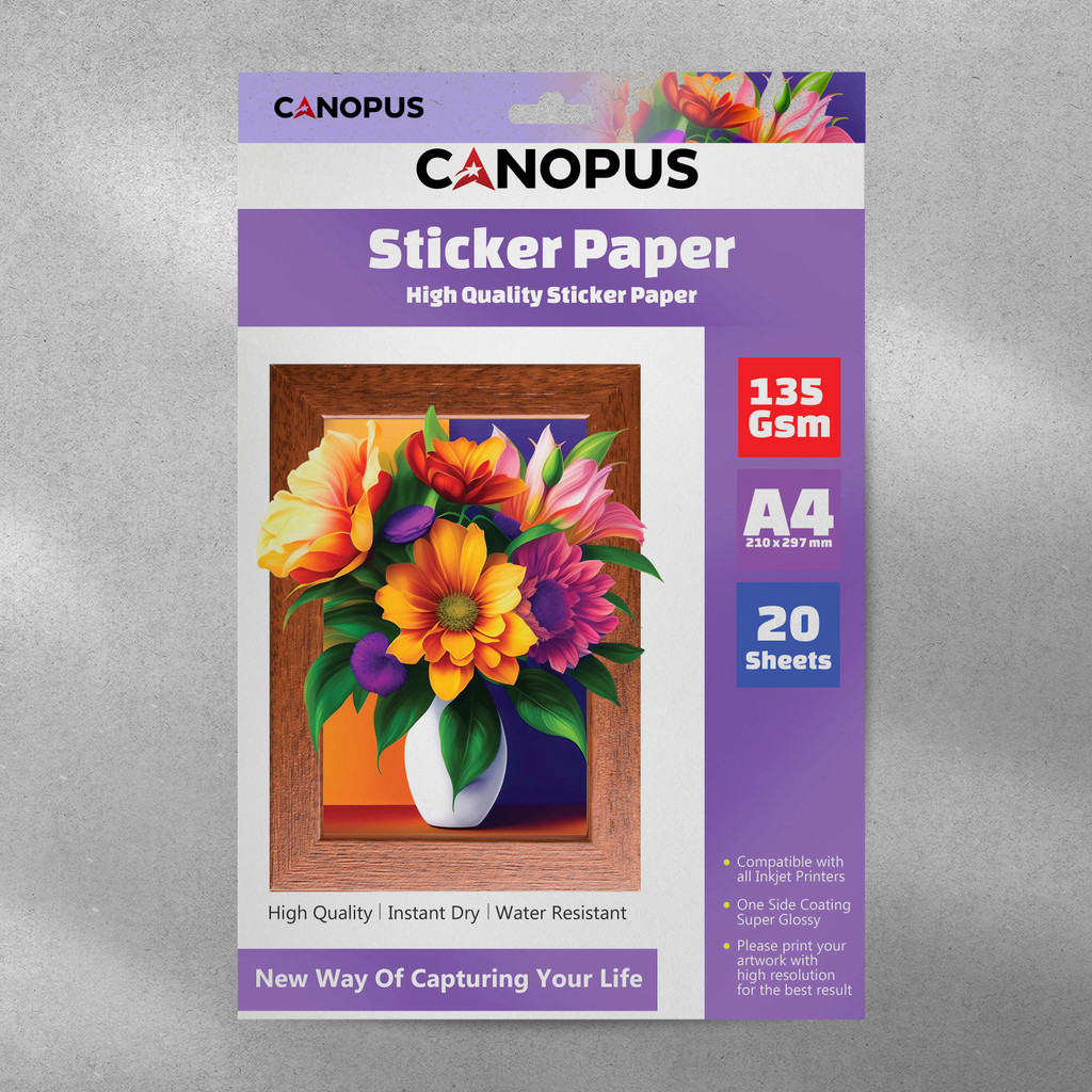 CANOPUS Kertas Stiker Glossy Pearl White Sticker Paper Vinyl Inkjet A4 135 Gsm