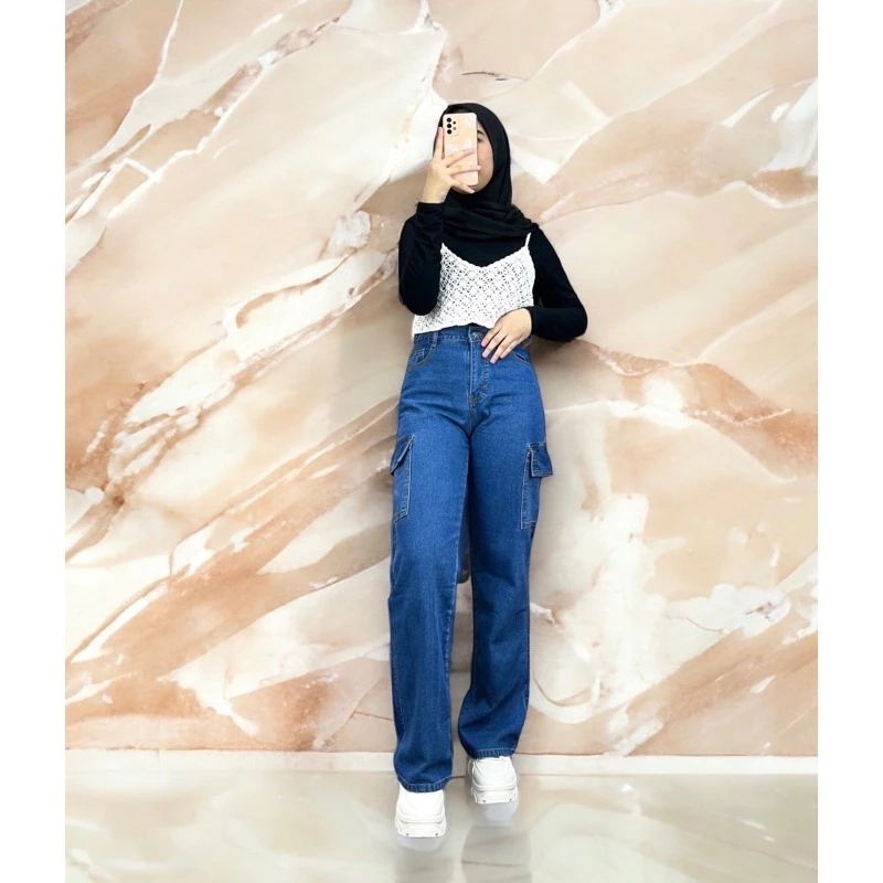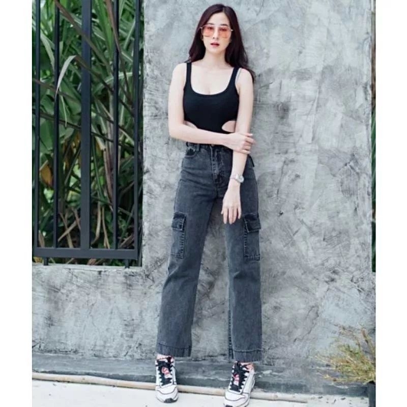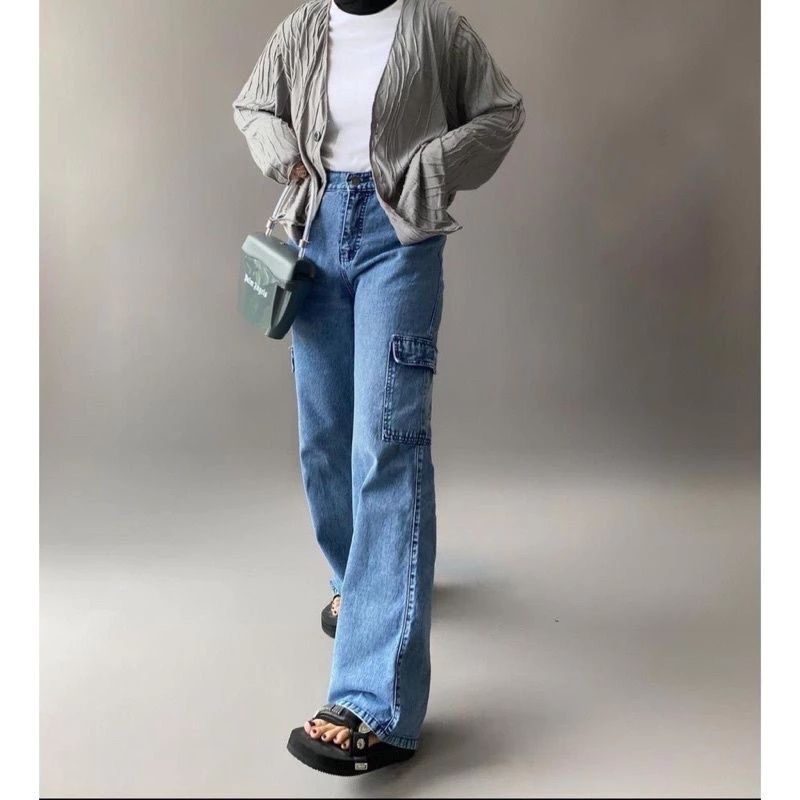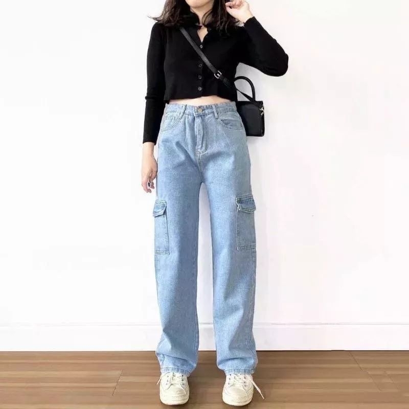 CARGO PANTS JEANS KEKINIAN/CARGO HIGH WAIST STYLISH/CARGO JEANS WANITA/KARGO JEANS VIRAL/KARGO JEANS FASHIONABLE