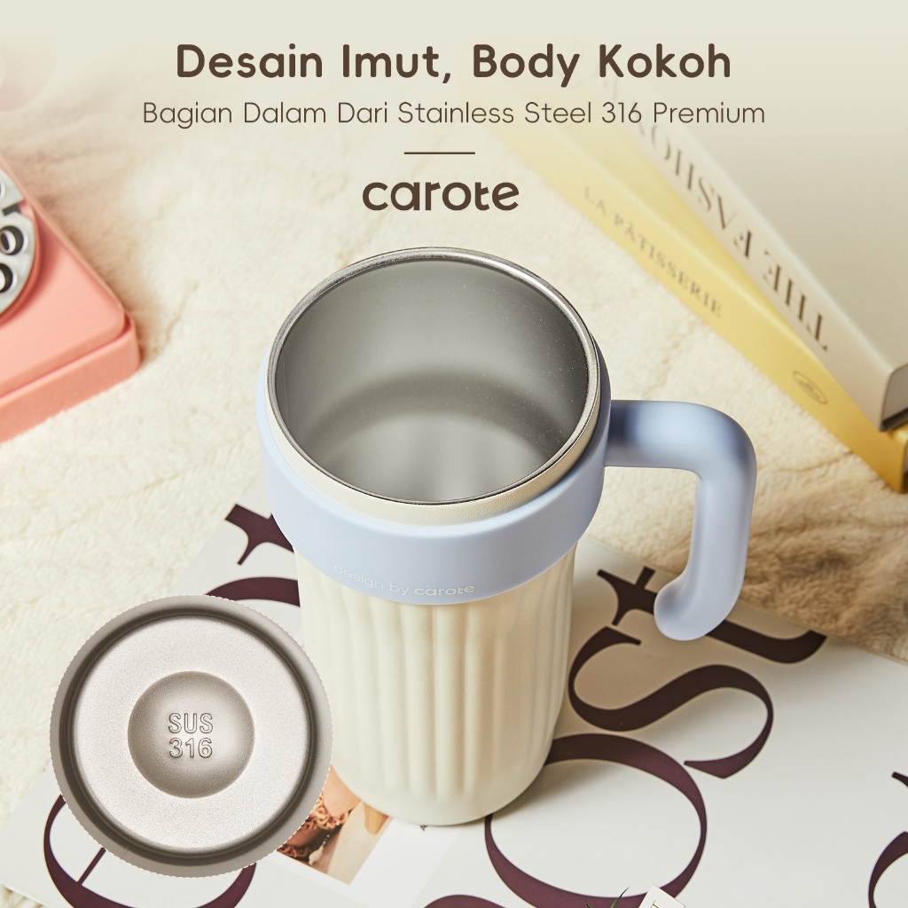 CAROTE Tumbler Botol Minum 860ml Stainless Steel 316 Dengan Gagang Kapasitas Air Besar Dilengkapi Dengan Sedotan Mudah Dibersihkan Anti Bocor Alas Silikon Anti Slip Food Grade Sky Blue