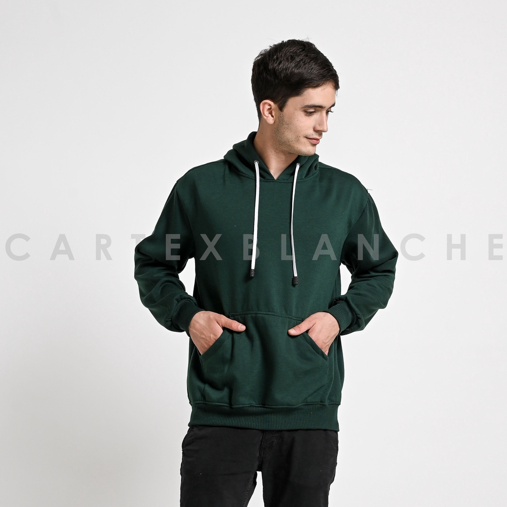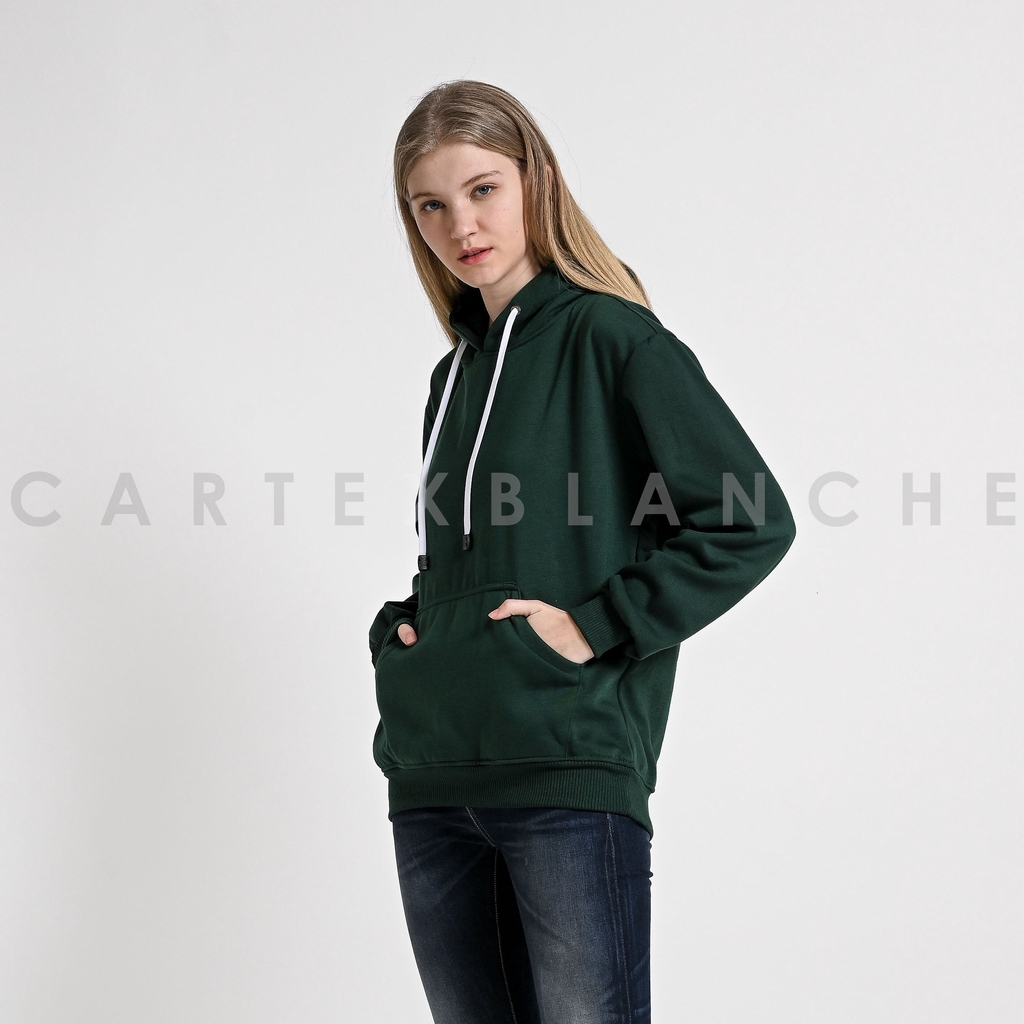 CARTEXBLANCHE - Hijau Botol Jaket Hoodie Jumper Polos Unisex Pria - Wanita Size M - XXL