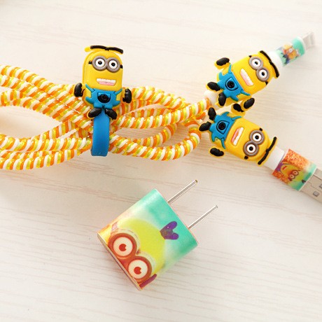 CARTOON Set Cable Protector Winder Spiral Kabel Minion Mickey Kitty