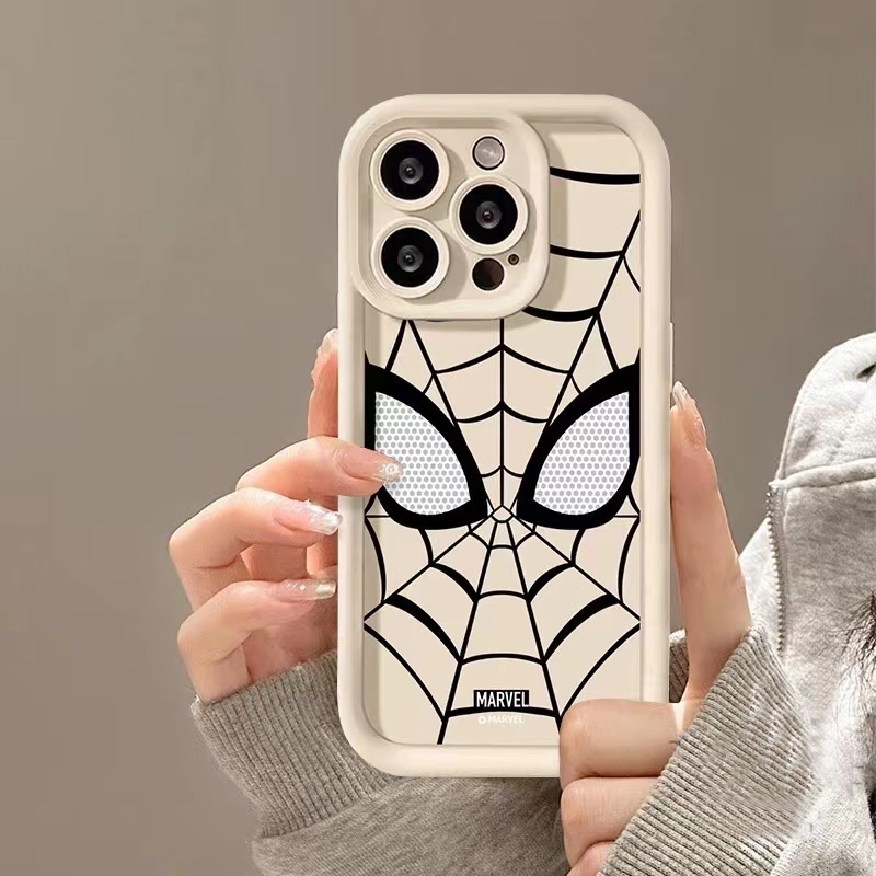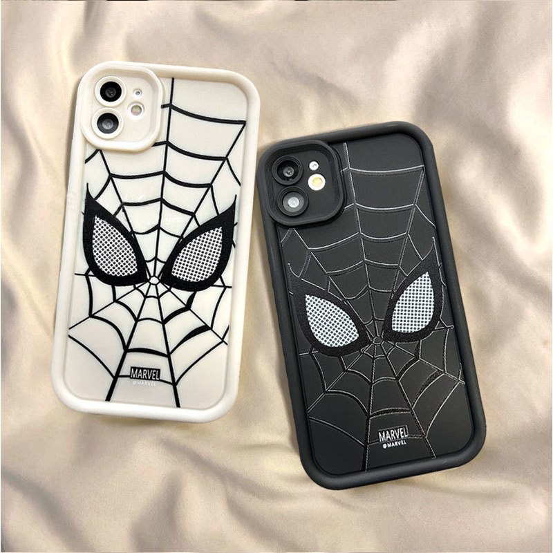 CASE Cocok untuk casing iPhone 7 8 6 6 S Plus 11 12 mini 14 15 13 Pro Max ampelas lubang Silikon White Spiderman casing