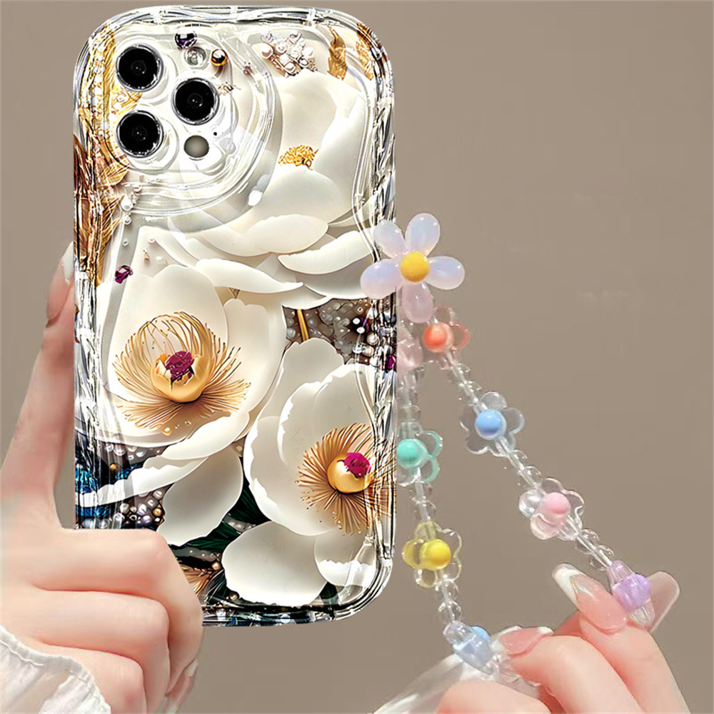 CASEDI Casing hp Xiaomi Poco C75 C65 Poco X6 5G X5 M6 PRO C55 C61 C40 M3 Pro X3 GT X3 NFC M3 Lanyard Kesing Pearl White Flower Soft Case