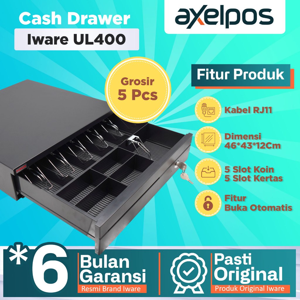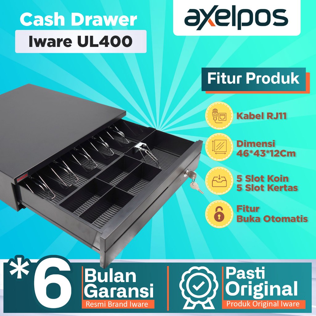 Axelpos CASH DRAWER LACI UANG KASIR IWARE UL 400 KONEKSI RJ11