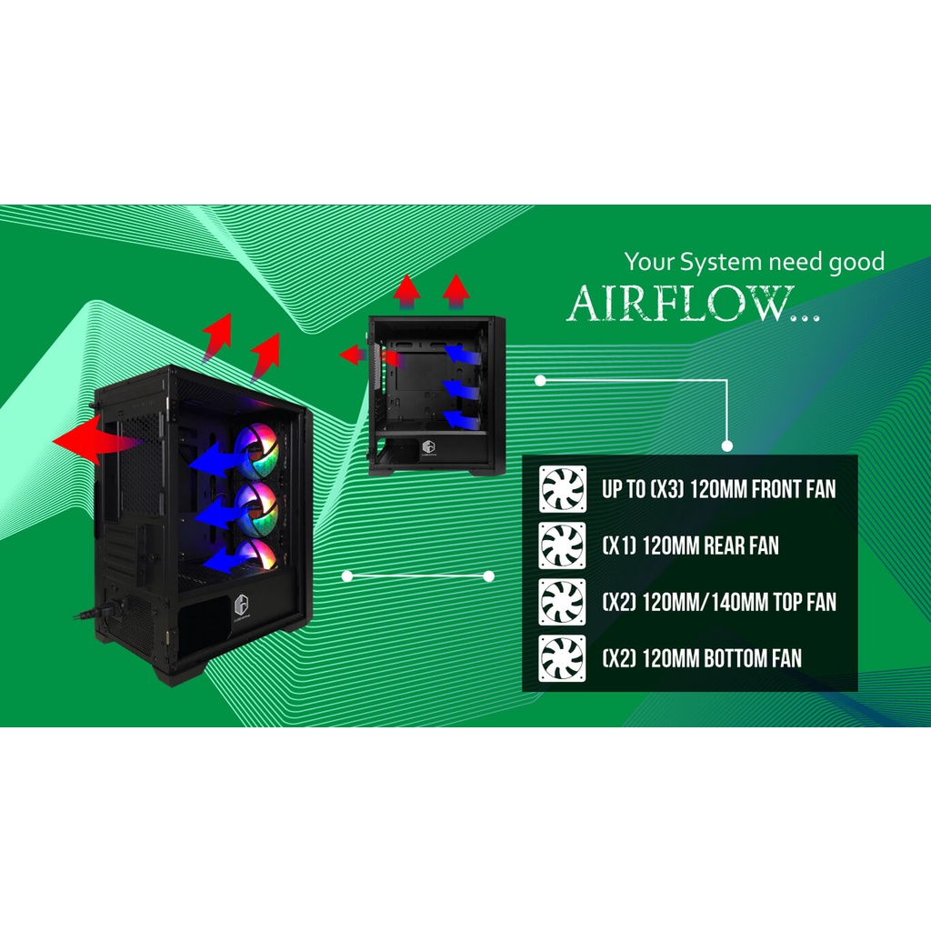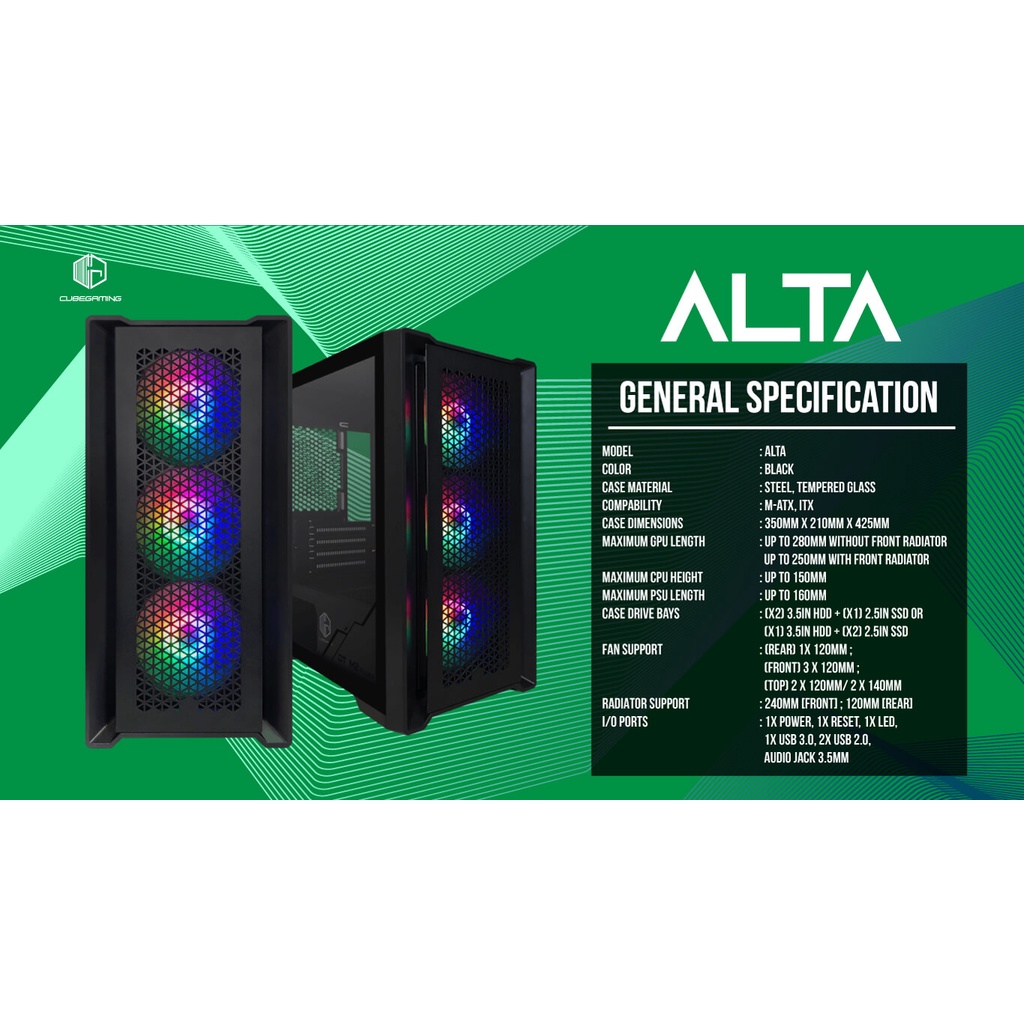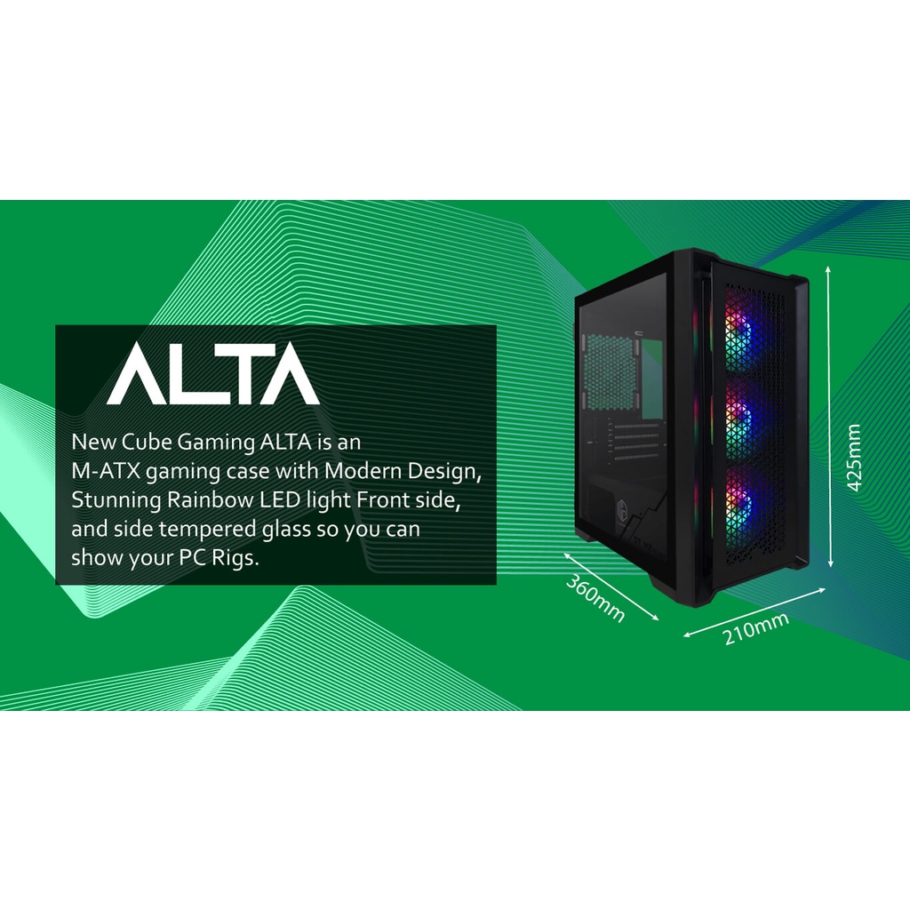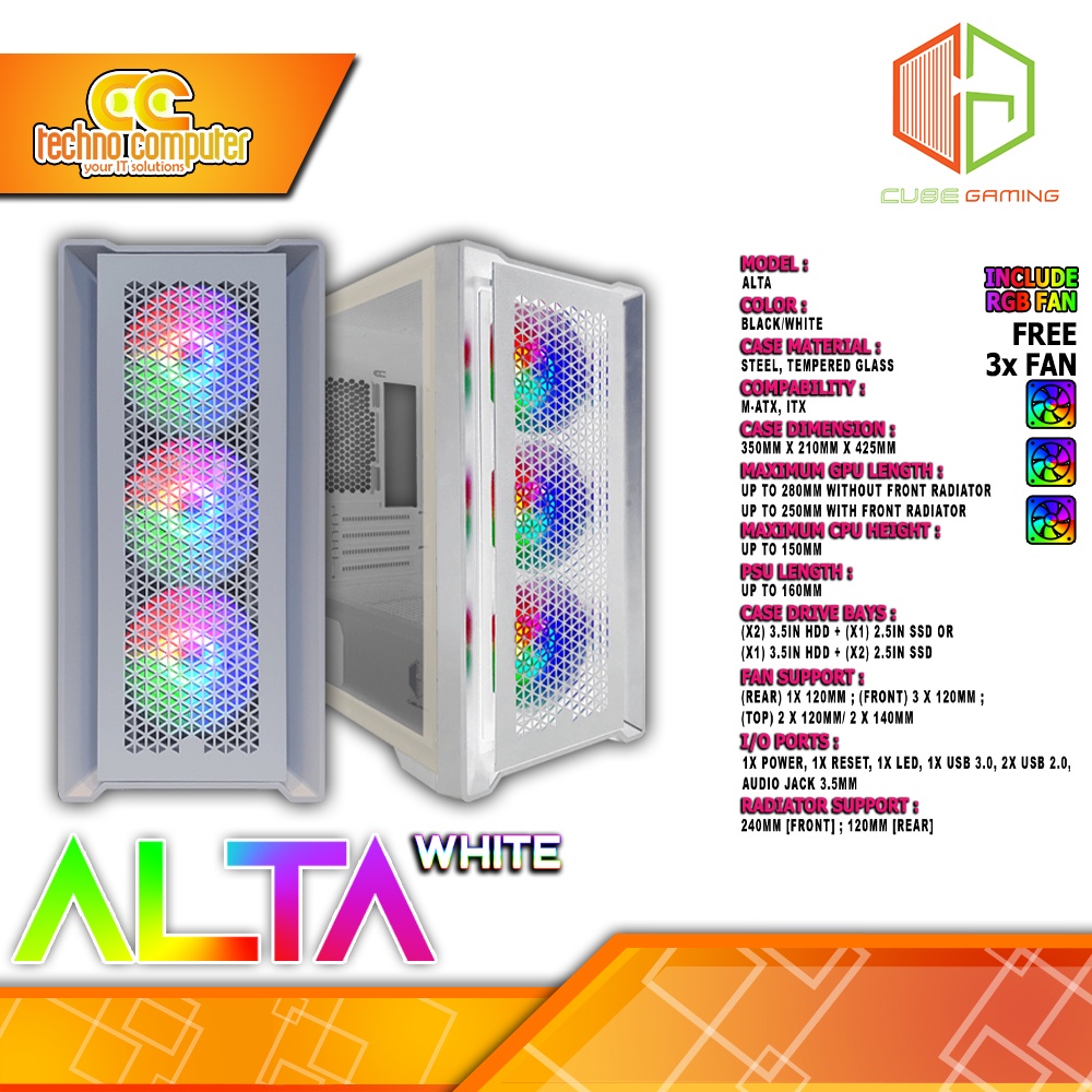 CASING CUBE GAMING ALTA White - LEFT SIDE GLASS DOOR - mATX Case (Free 3x RGB Fans)