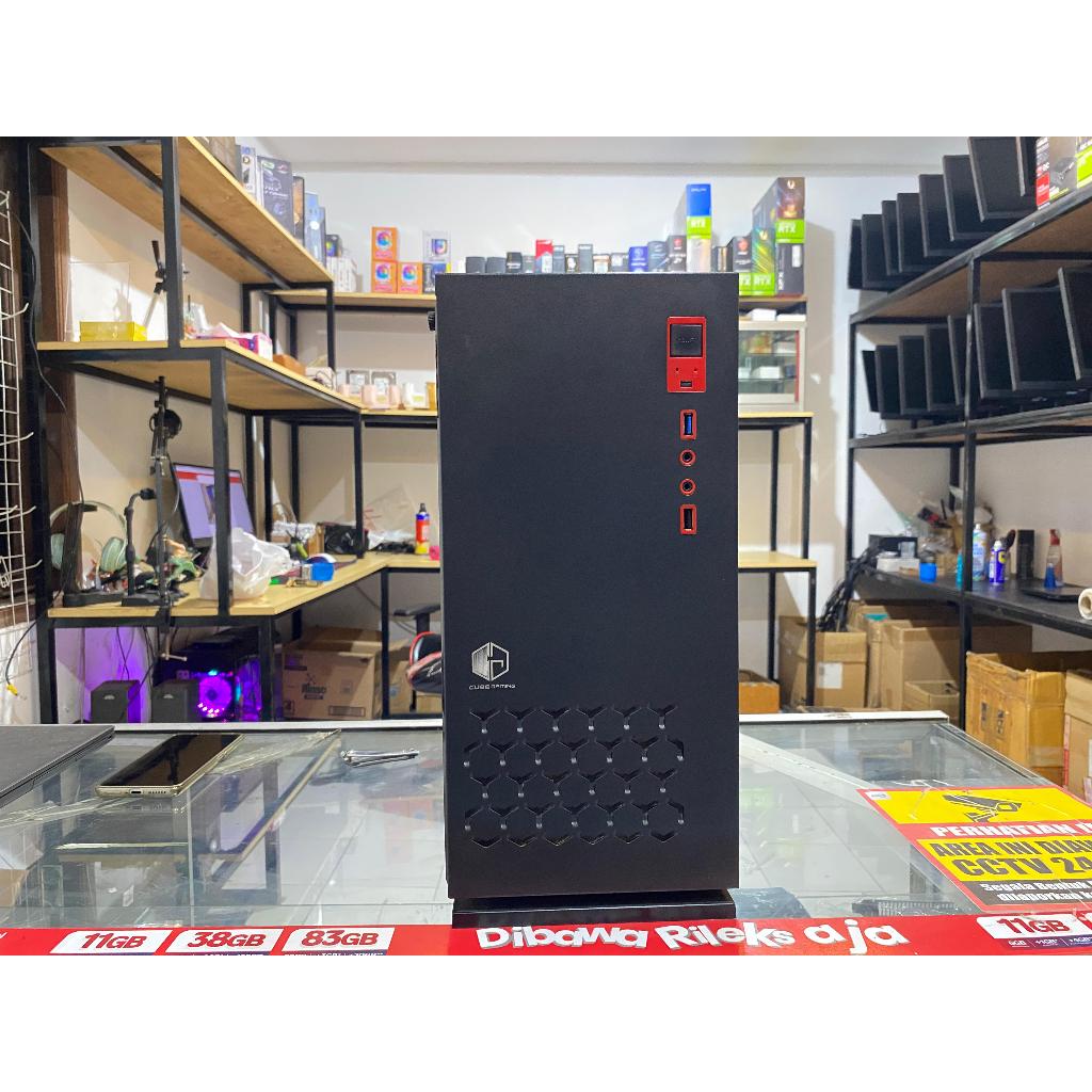 CASING GAMING CUBE GAMING VRED BLACK - M ATX - Full Acrylic Window - 1x12CM Red Led Fan
