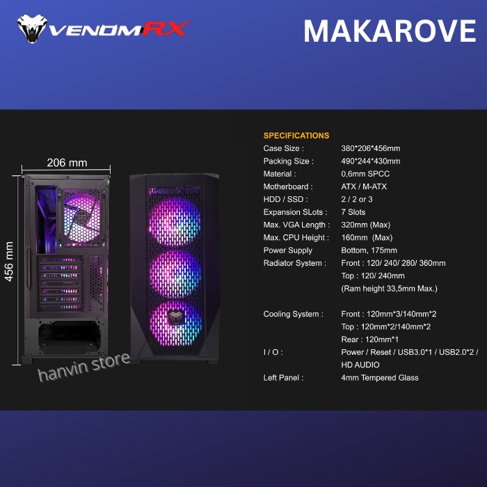 CASING GAMING VENOMRX MAKAROVE + 4 Fan RGB