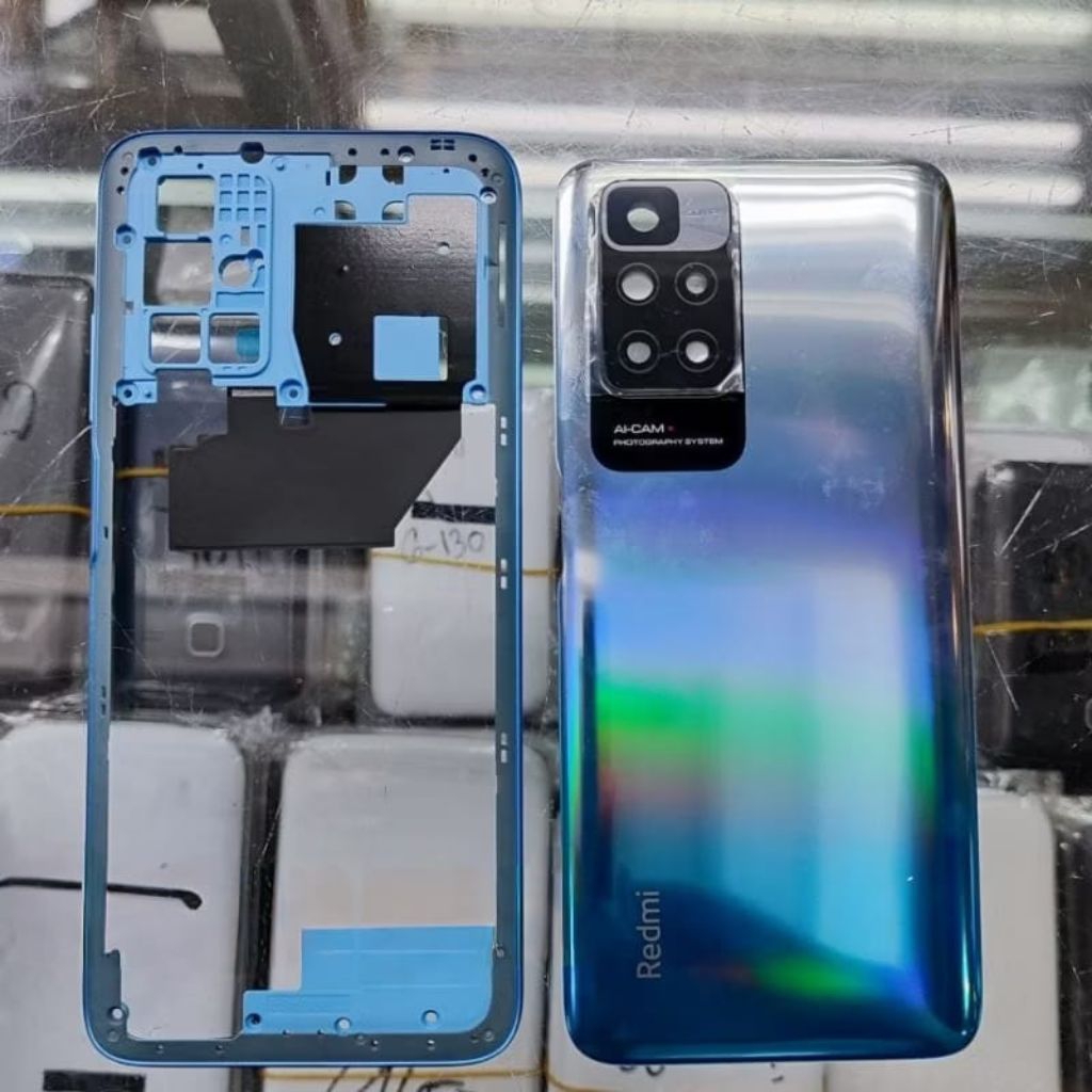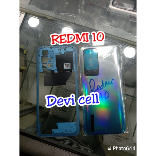 CASING KESING HOUSING XIAOMI REDMI 10 4G 2021 ORIGINAL BACKDOOR + RANGKA KERANGKA TULANG TENGAH TUTUP MESIN BAZEL BEZEL FULLSET