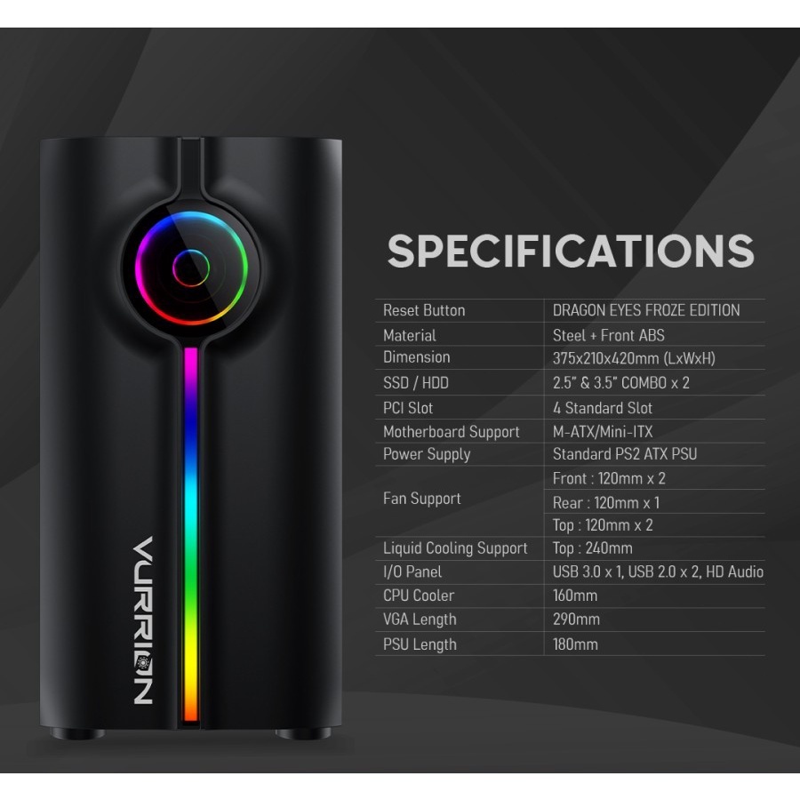 CASING PC GAMING VURRION DRAGON EYES BLACK M-ATX ABS CASE CPU + 1 FAN RGB / CASE06-VUR