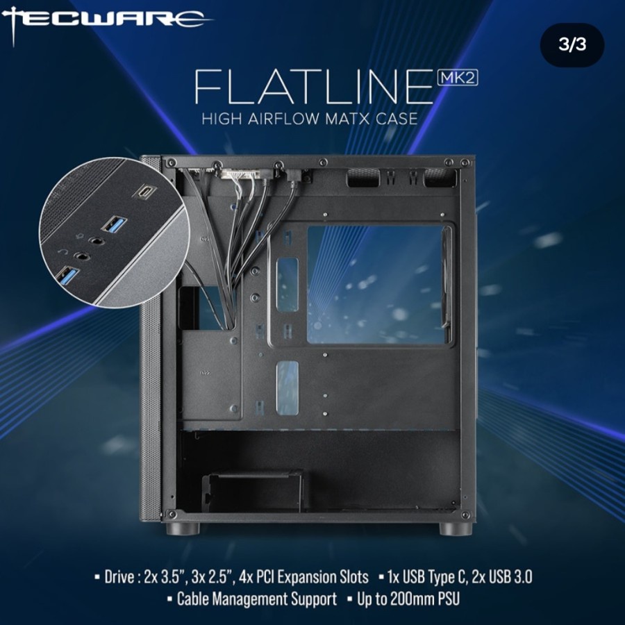 CASING TECHWARE FLATLINE M-ATX PC GAMING CASE BLACK/WHITE 4 FAN