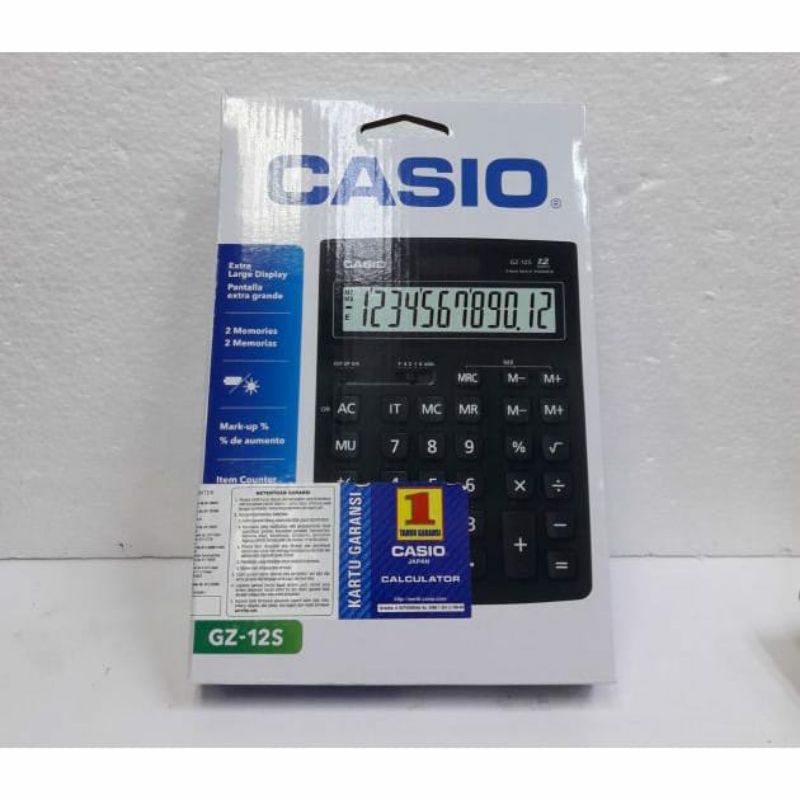 CASIO KALKULATOR GZ 12 S LARGE DISPLAY TWO WAY POWER 12 DIGIT ORIGINAL ASLI
