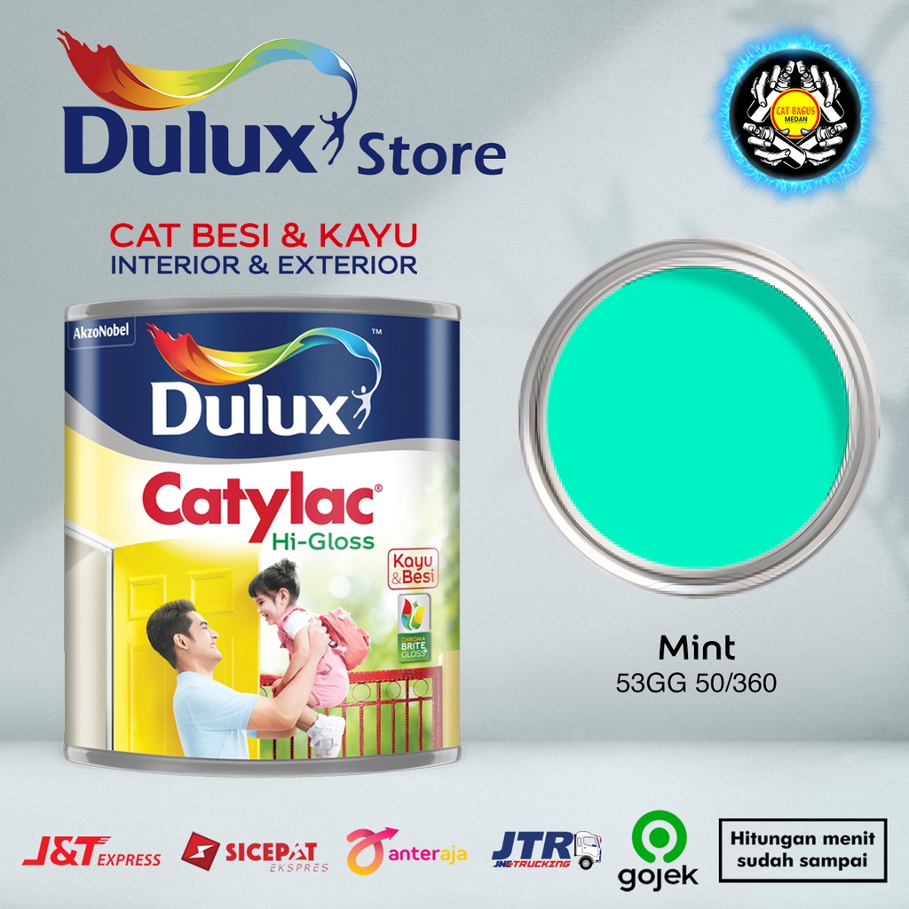 CAT MINYAK CAT KAYU DAN BESI DULUX CATYLAC HI-GLOSS 1 KG MINT 53GG 50/360 HIJAU TOSCA BIRU TOSCA CYAN TEAL TELUR ASIN 1KG CAT KUSEN PINTU JENDELA ENAMEL ANTI KARAT ANTI RAYAP GOJEK HIGLOSS VGLOSS V-GLOSS AVIAN BEE BRAND 1000 JUNIOR EXTERIOR MEDAN BINJAI