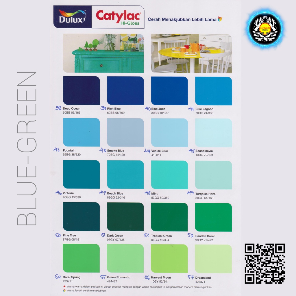 CAT MINYAK CAT KAYU DAN BESI DULUX CATYLAC HI-GLOSS 1 KG WARNA BEACH BLUE 88GG 32/346 HIJAU TOSCA BIRU TOSCA CYAN TEAL 1KG CAT KUSEN PINTU JENDELA ENAMEL ANTI KARAT ANTI RAYAP GOJEK HIGLOSS VGLOSS V-GLOSS AVIAN BEE BRAND 1000 JUNIOR EXTERIOR MEDAN BINJAI