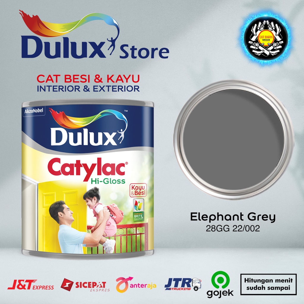 CAT MINYAK CAT KAYU DAN BESI DULUX CATYLAC HI-GLOSS 1 KG WARNA ELEPHANT GREY 28GG 22/022 ABU ABU TUA 1KG CAT KUSEN PINTU JENDELA SYNTHETIC ENAMEL ANTI KARAT ANTI RAYAP GOJEK HIGLOSS V-GLOSS AVIAN BEE BRAND 1000 JUNIOR EXTERIOR TERMURAH DI MEDAN BINJAI