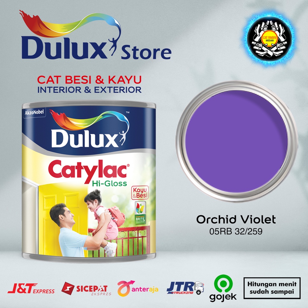 CAT MINYAK CAT KAYU DAN BESI DULUX CATYLAC HI-GLOSS 1 KG WARNA ORCHID VIOLET 05RB 32/259 UNGU PURPLE PASTEL 1KG CAT KUSEN PINTU JENDELA ENAMEL ANTI KARAT ANTI RAYAP GOJEK HIGLOSS VGLOSS V-GLOSS AVIAN BEE BRAND 1000 JUNIOR EXTERIOR TERMURAH DI MEDAN BINJAI