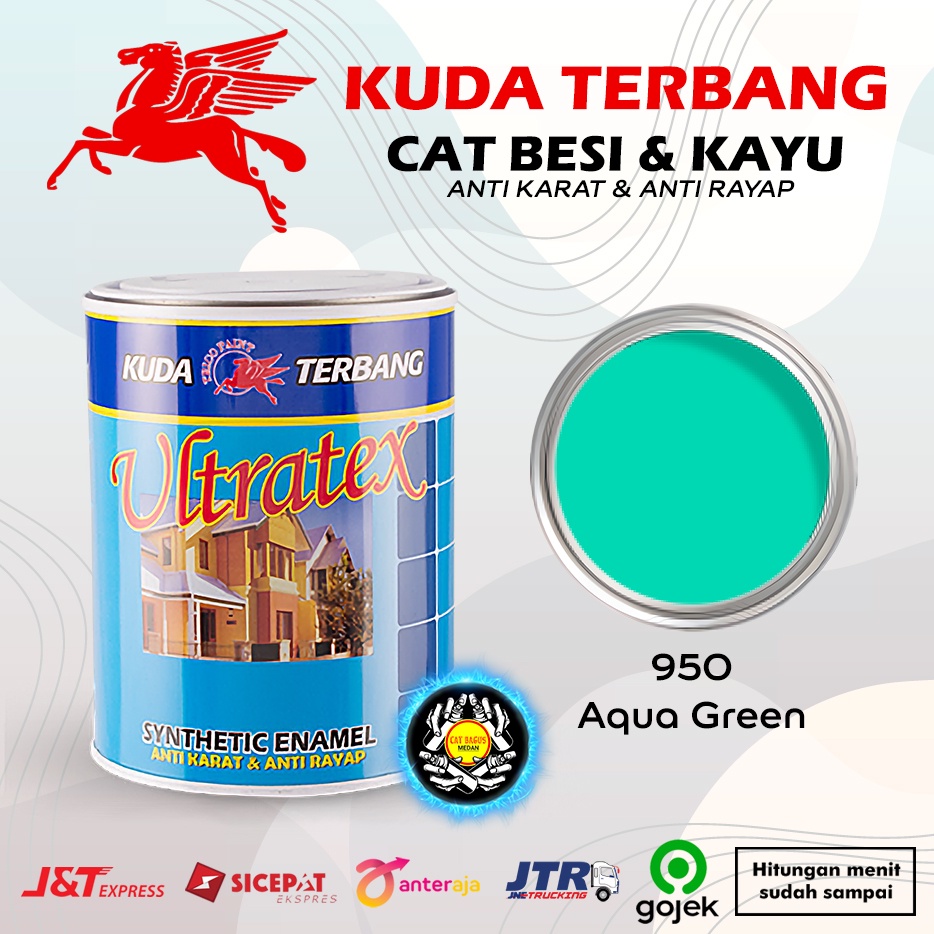 CAT MINYAK CAT KAYU DAN BESI KUDA TERBANG ULTRATEX 1 KG WARNA 950 AQUA GREEN HIJAU TOSCA MINT HIJAU PASTEL 1KG CAT KUSEN PINTU SYNTHETIC ENAMEL ANTI KARAT ANTI RAYAP TERMURAH DI MEDAN BINJAI