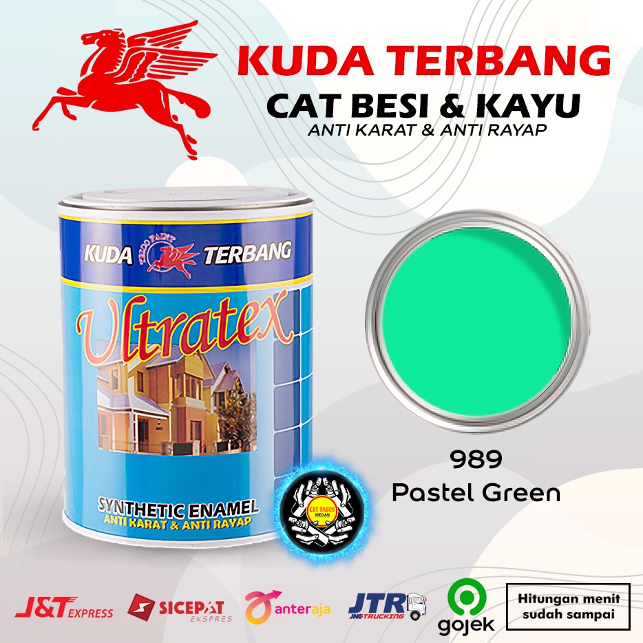 CAT MINYAK CAT KAYU DAN BESI KUDA TERBANG ULTRATEX 1 KG WARNA 989 PASTEL GREEN HIJAU TOSCA MINT HIJO PASTEL 1KG CAT KUSEN PINTU SYNTHETIC ENAMEL ANTI KARAT ANTI RAYAP TERMURAH DI MEDAN BINJAI