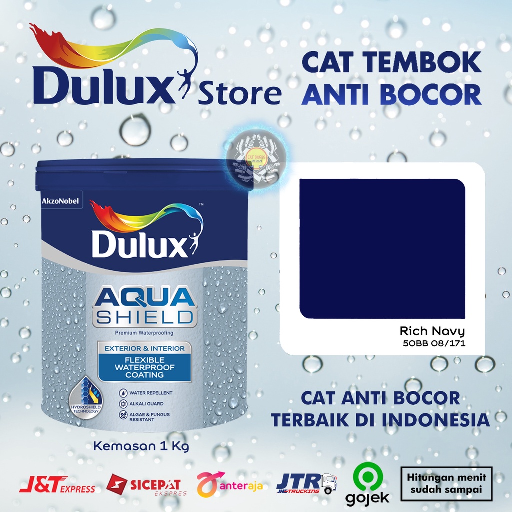 CAT TEMBOK ANTI BOCOR DULUX AQUASHIELD 2X LEBIH KUAT TAHAN CUACA WARNA RICH NAVY 50BB 08/171 BIRU TUA DONGKER BLUE 1KG 1 KG AQUA SHIELD EXTERIOR EKSTERIOR TAHAN AIR WATERPROOF CAT SENG TERMURAH DI MEDAN BINJAI