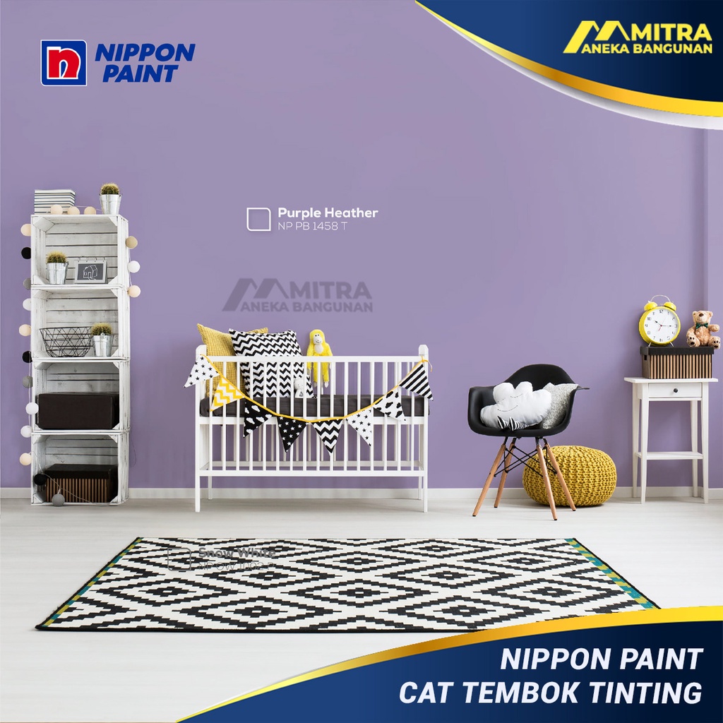 CAT TEMBOK EKSTERIOR INTERIOR NIPPON PAINT PURPLE HEATHER NP PB 1458 T / VINILEX ELASTEX SPOTLESS / UNGU LILAC