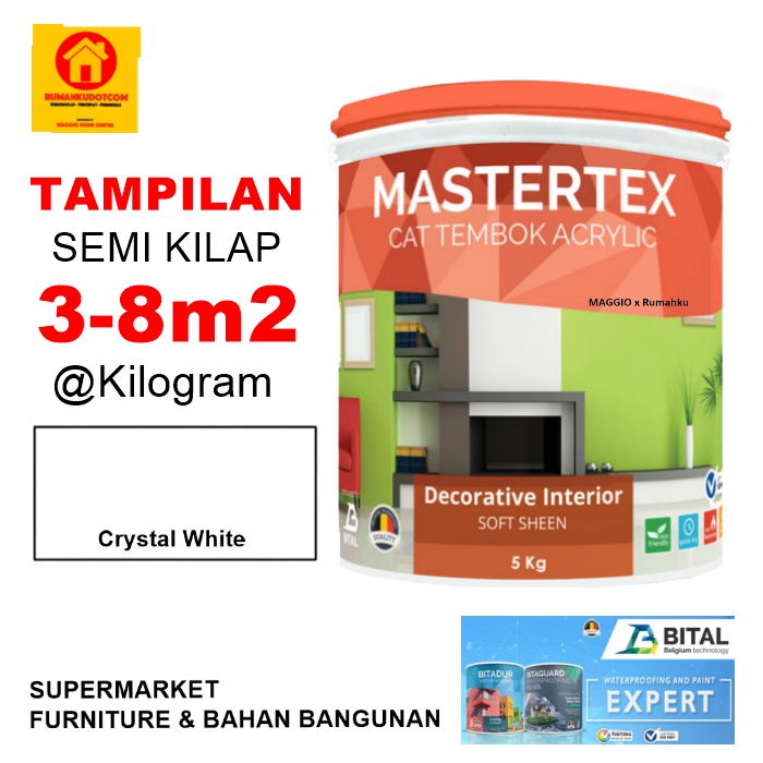 CAT TEMBOK PUTIH 5KG SEMI KILAP - CAT DINDING PUTIH 5KG - CAT INTERIOR MASTERTEX 5KG - BITAL