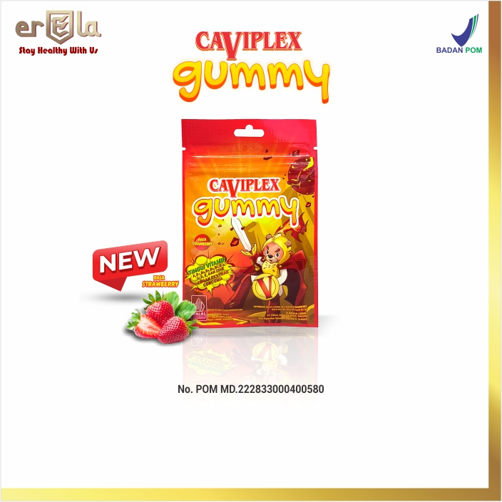 [BEST SELLER DISKON] CAVIPLEX GUMMY BOX STRAWBERRY (50 Gummies) - Suplemen Multivitamin Anak + Ekstrak Curcuma