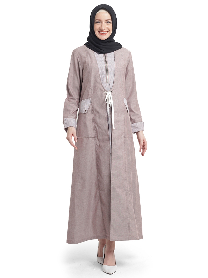 CBR SIX Busana muslim wanita / Baju gamis wanita / Dress gamis wanita / Dress maxi wanita / Oxford coklat kombinasi OKC 607