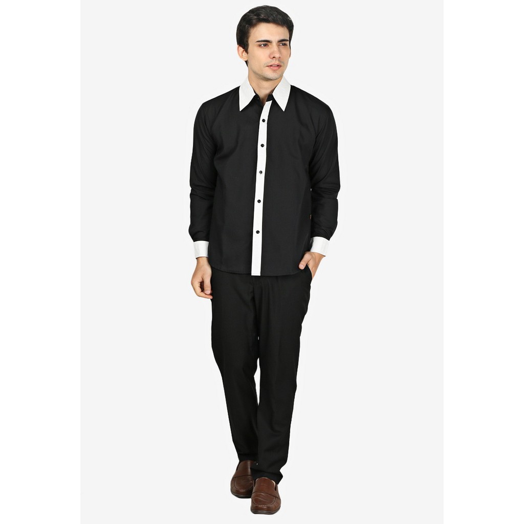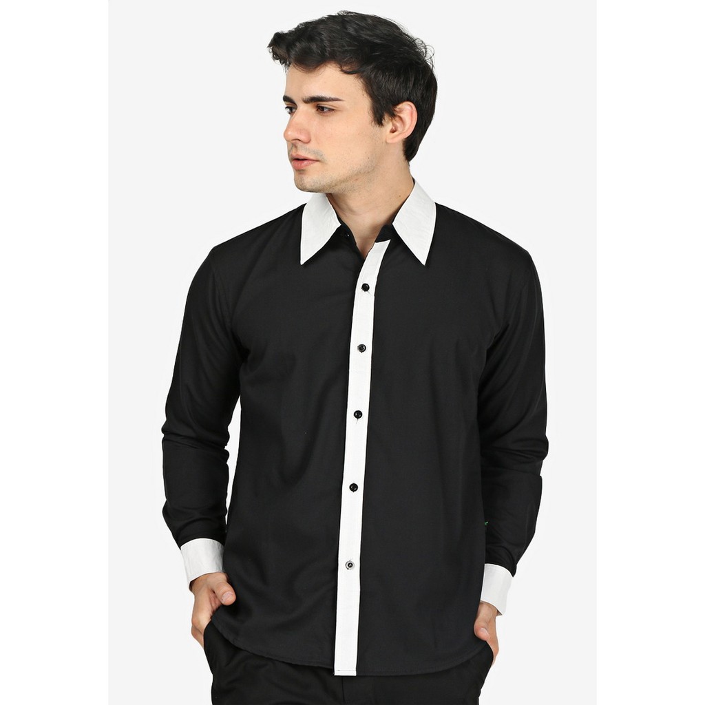 CBR SIX Kemeja tangan panjang pria | Kemeja formal kasual resmi kerja | Cotton hitam ISC 221