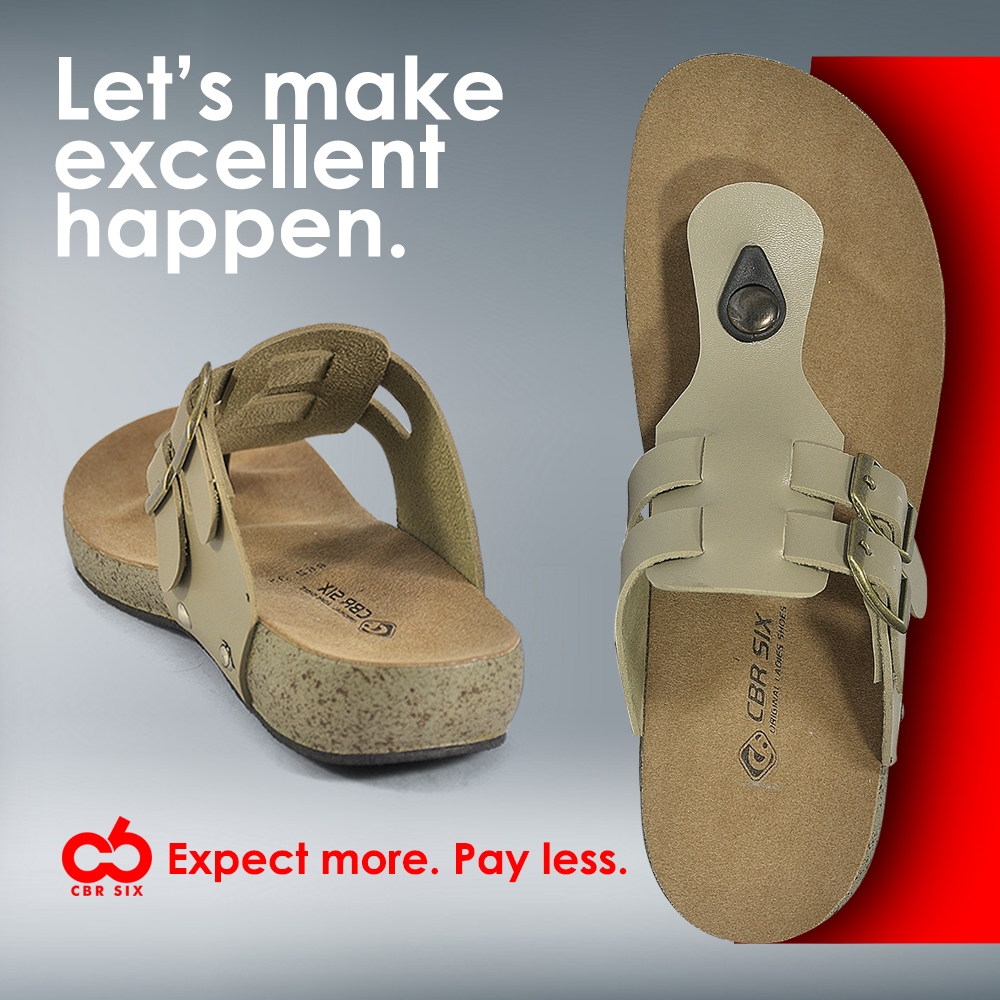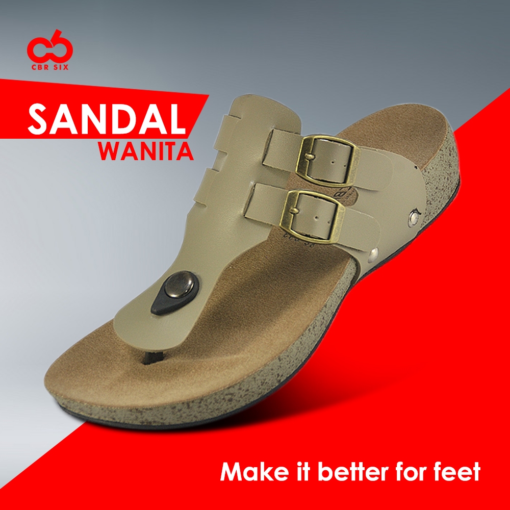 CBR SIX Sandal kasual flat wanita | Sandal casual slipper jepit wanita | Krem WIC 662