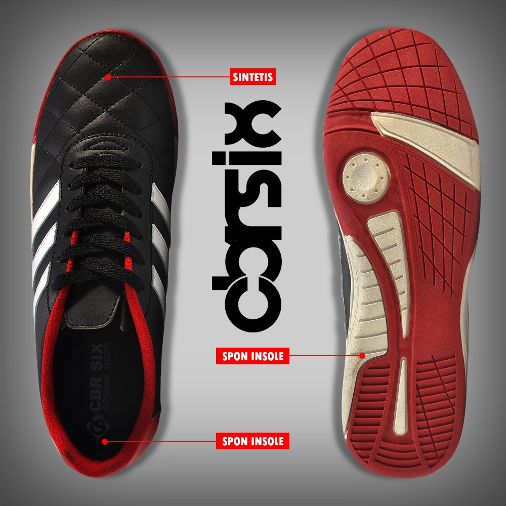 CBR SIX Sepatu futsal pria | Sepatu sport olahraga pria | Futsal lari joging | Sol karet | Sepatu bertali | Hitam kombinasi UNC 992