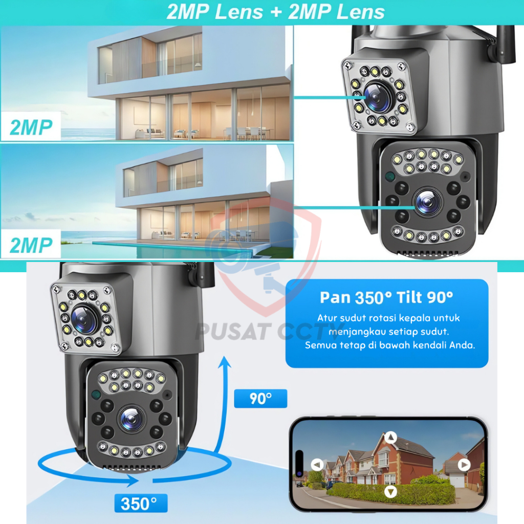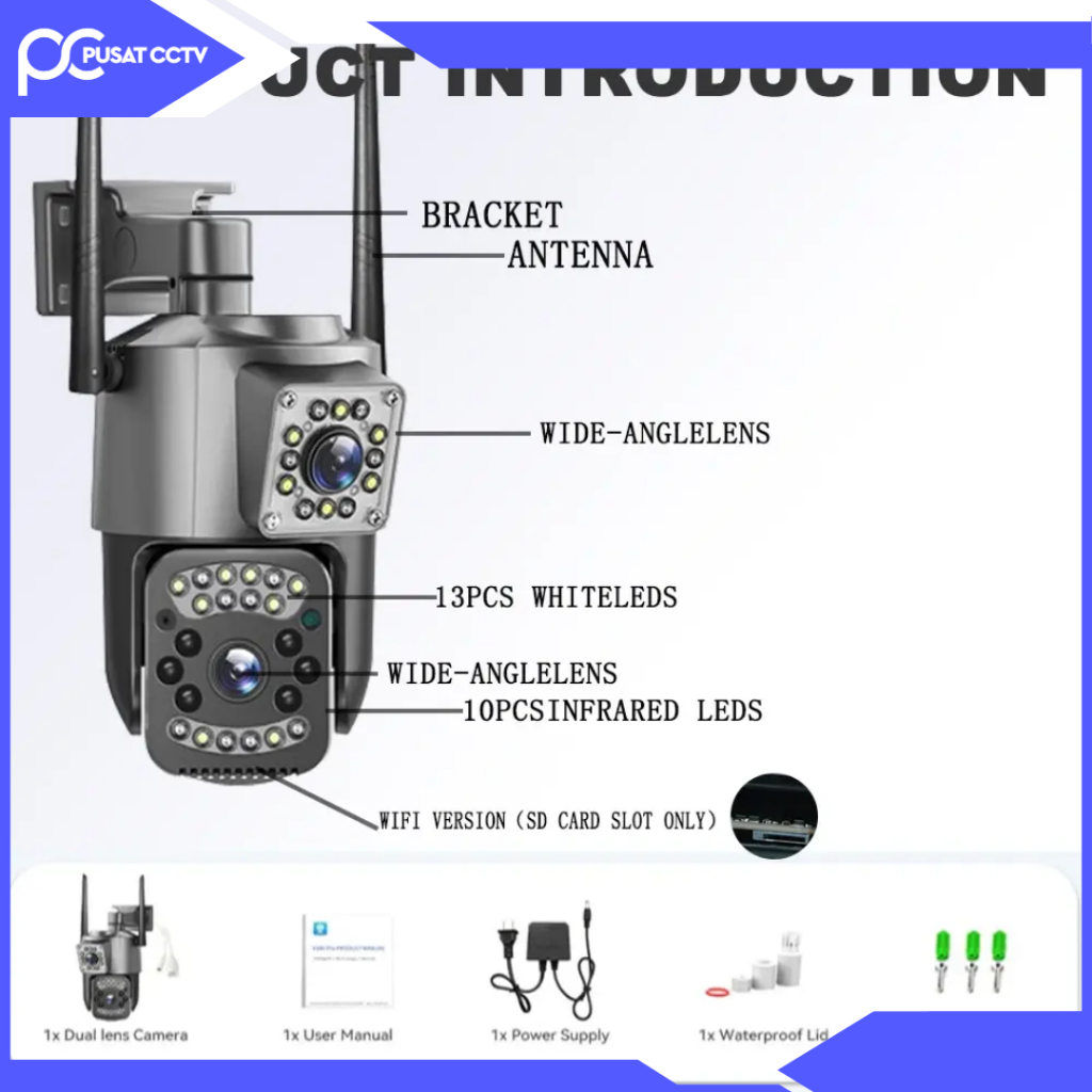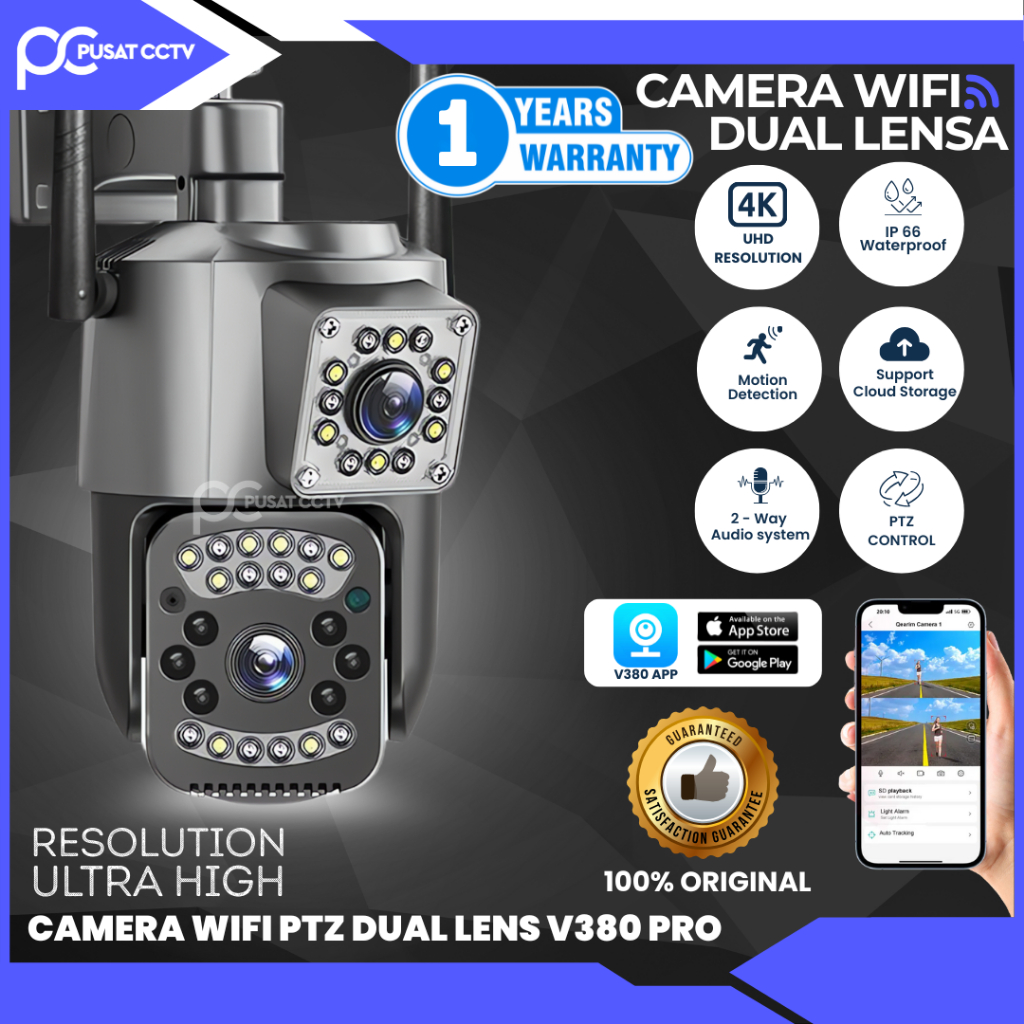 CCTV V380 Pro Outdoor Dual Lens Kamera HD 8MP Wifi PTZ View Home Security Surveillance CCTV
