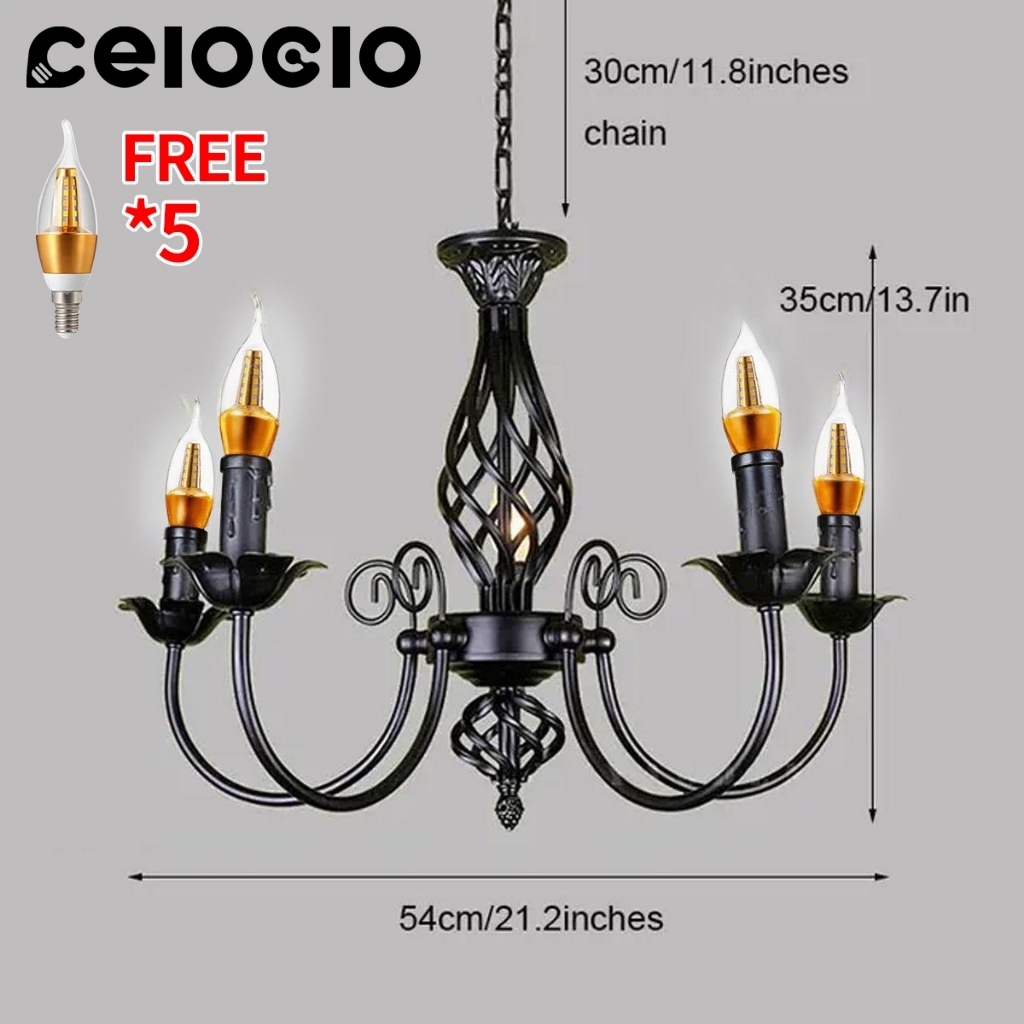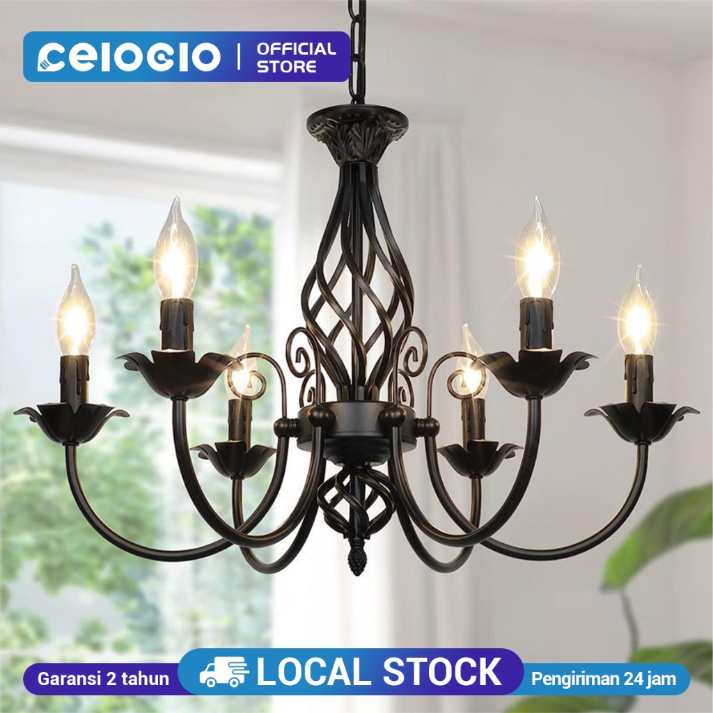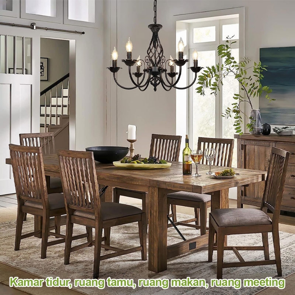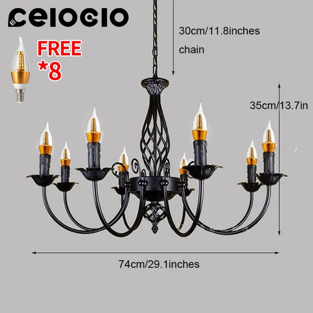 CELOGLO Lampu Gantung Candle 5/6/8 Heads Vintage Ceiling Lampu Gantung Ruang Tamu Makan E14 Bulb BR