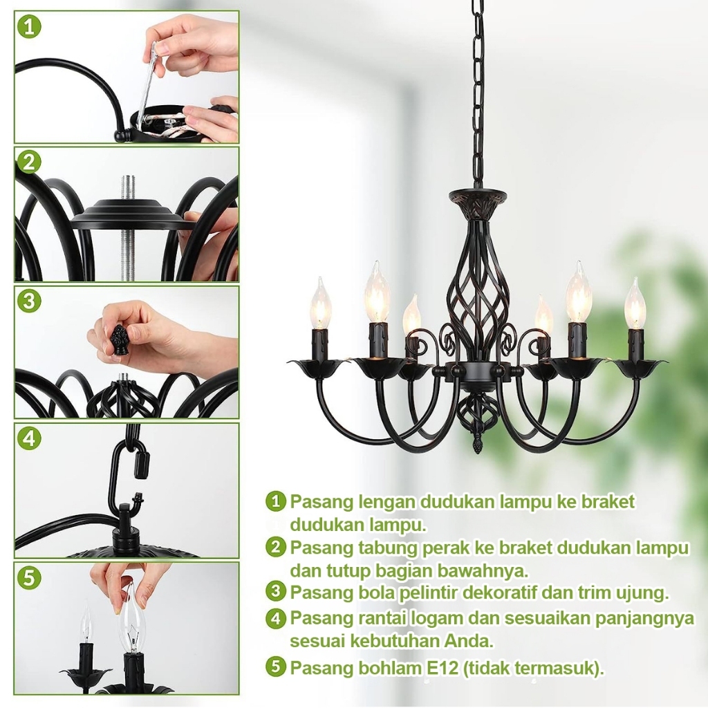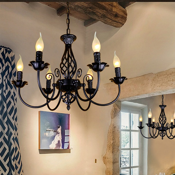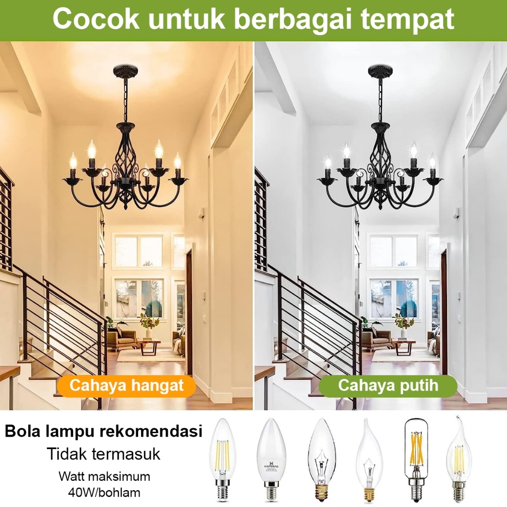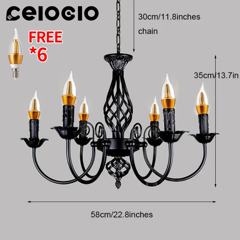 CELOGLO Lampu Gantung Candle 5/6/8 Heads Vintage Ceiling Lampu Gantung Ruang Tamu Makan E14 Bulb BR