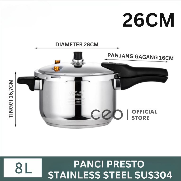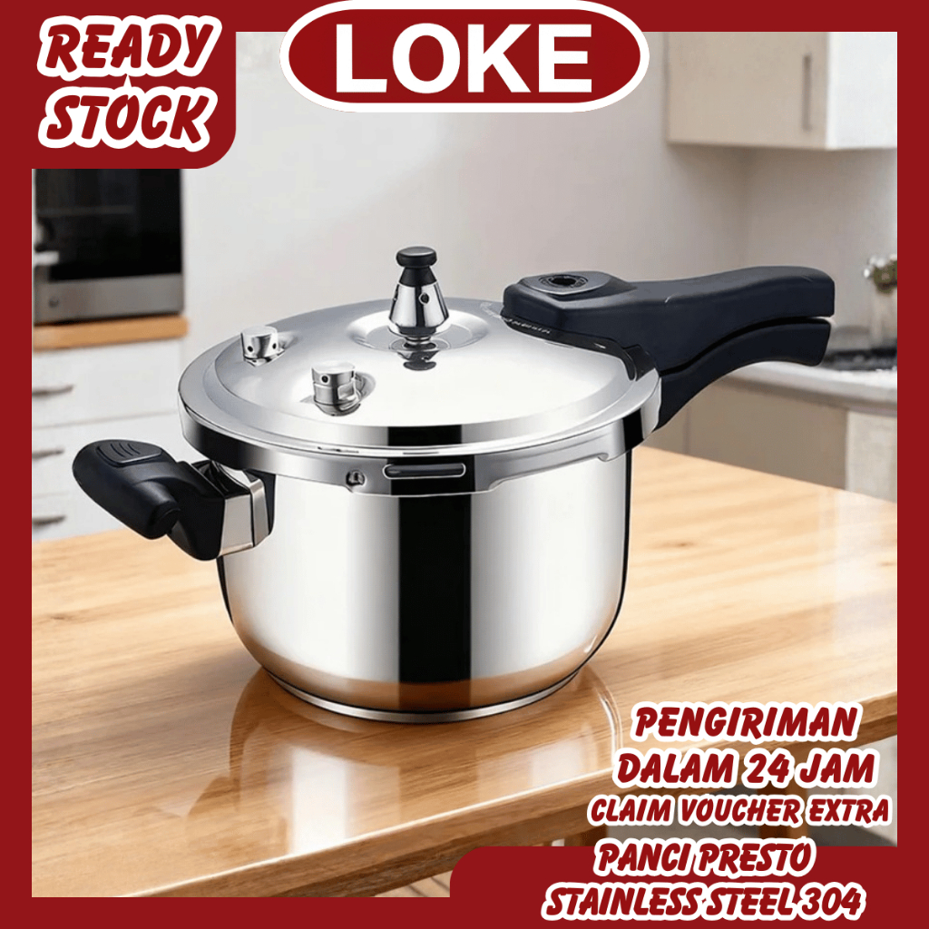 LOKE Panci Presto Stainless Steel 304 4L/8L/12L Liter Panci Steamer Panci Kukusan