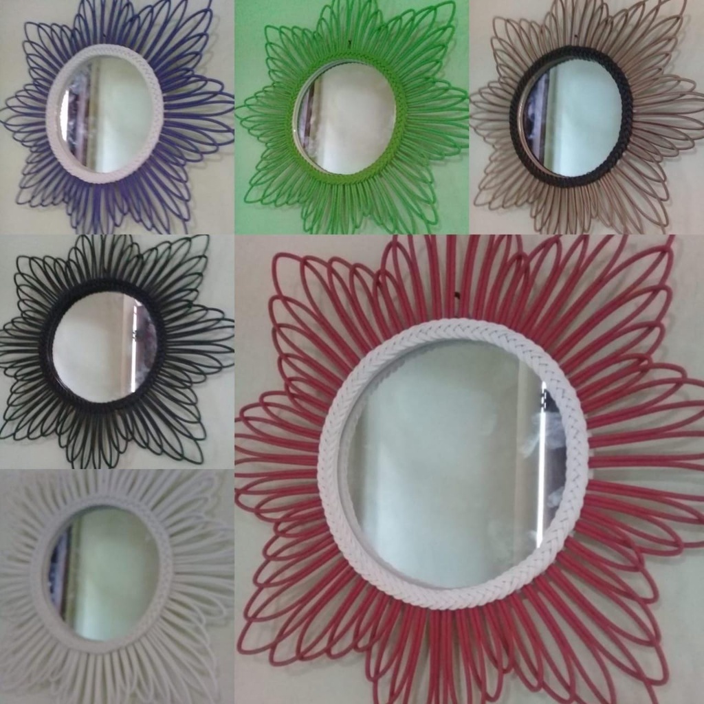 CERMIN BINGKAI ROTAN SINTETIS / CERMIN HIAS ROTAN / CERMIN BINGKAI MODEL BINTANG VARIASI WARNA