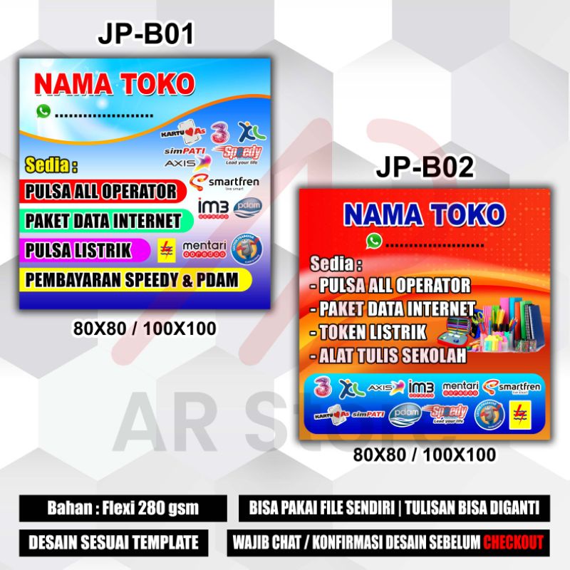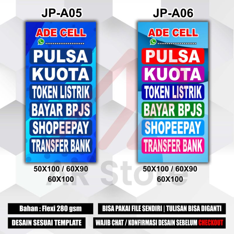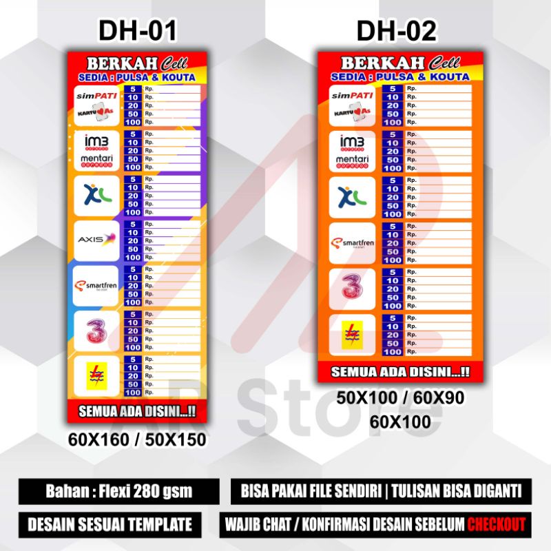 CETAK BANNER KONTER PULSA / JUAL PULSA / MITRA SHOPEE / DAFTAR HARGA PULSA / DESAIN SESUAI TEMPLATE