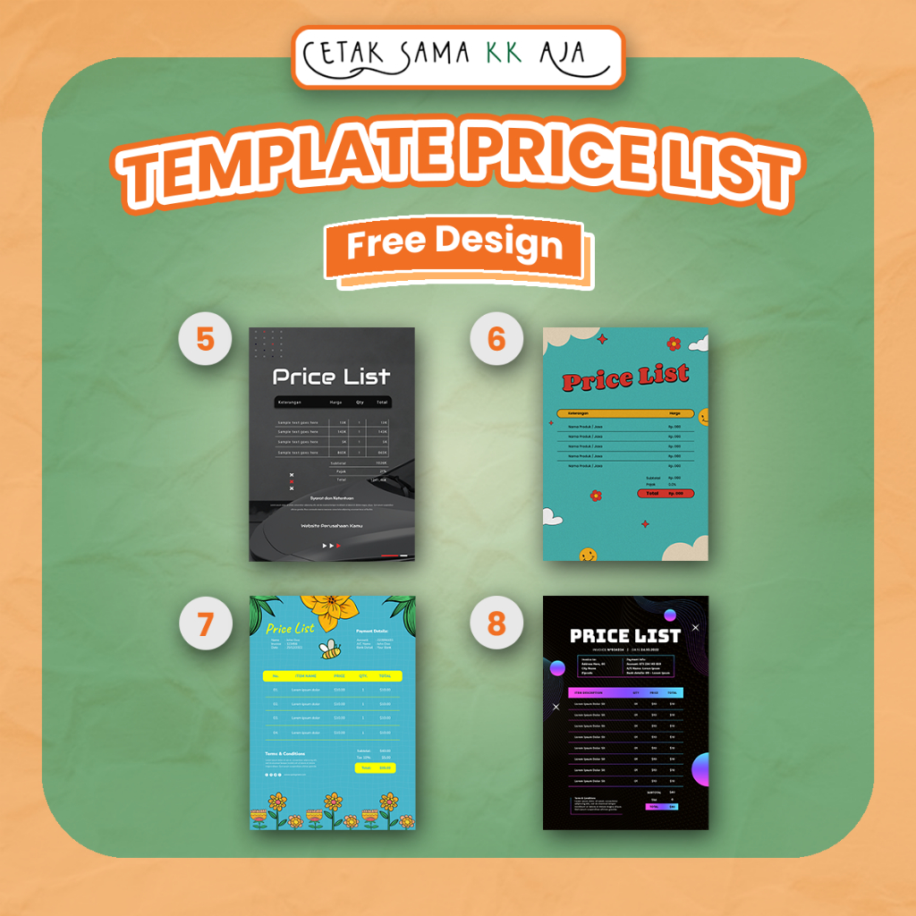 CETAK DAFTAR HARGA PRICELIST PRICE BOARD PRICE BOOKLET