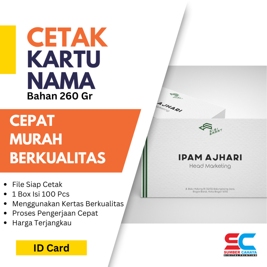 CETAK KARTU NAMA ID CARD 100 PCS 1 BOX / PRINT NAME CARD MURAH 1 HARI JADI