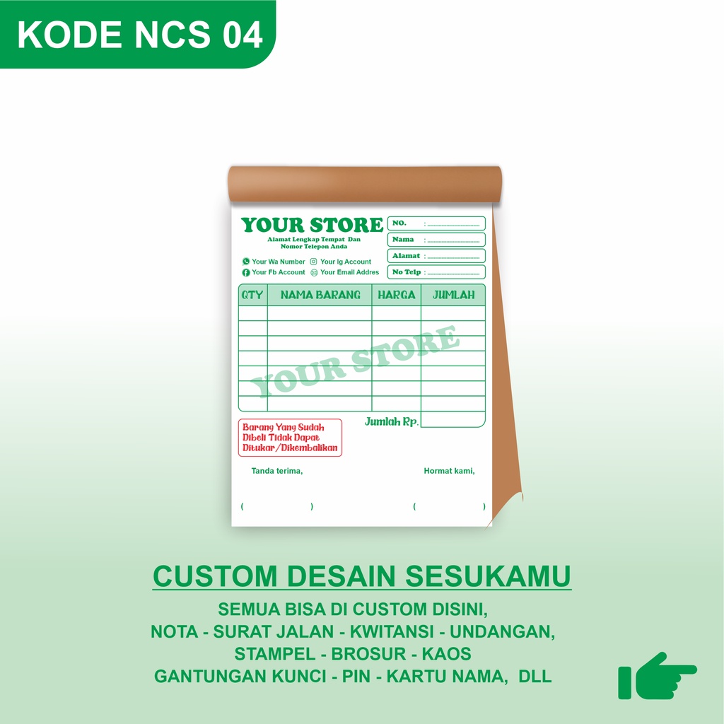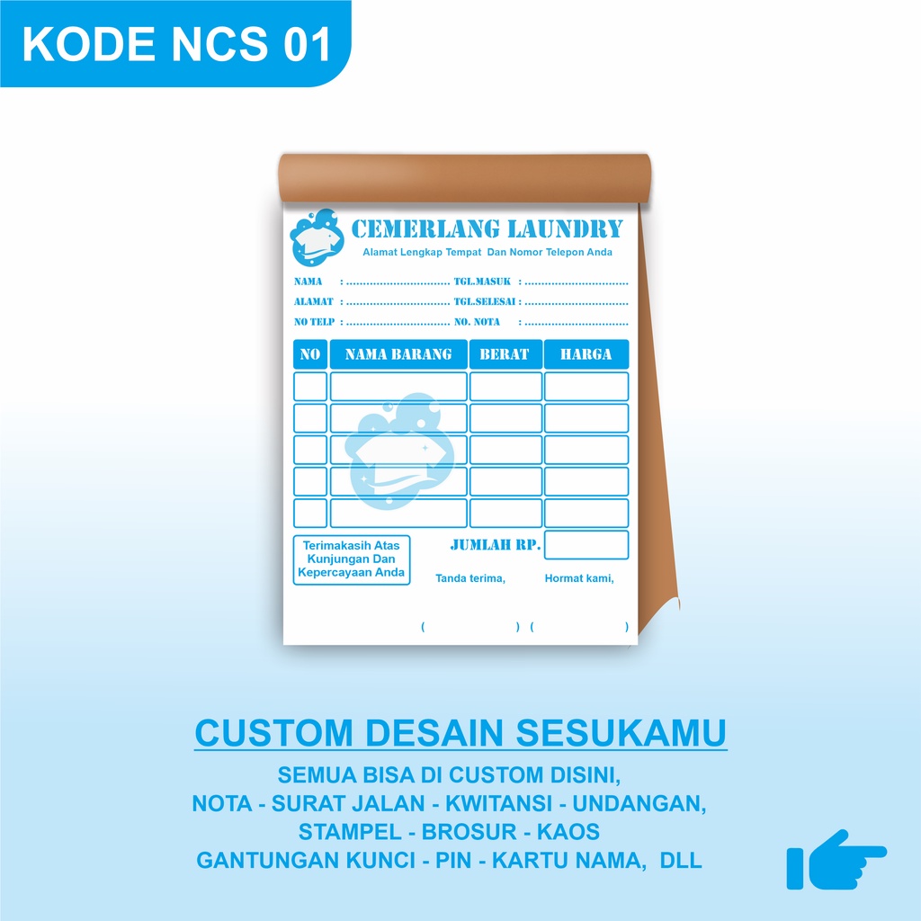 CETAK NOTA CUSTOM 1 PLAY, 2 PLAY, 3 PLAY SATUAN NOTA LAUNDRY, NOTA PRINT, UKURAN 8X10 CM