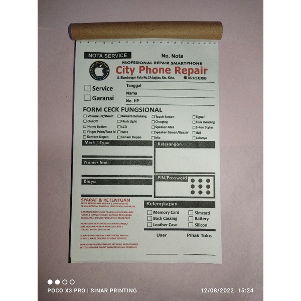 CETAK NOTA CUSTOM 2 PLY 1 RIM - RANGKAP SURAT JALAN - Nota laundry - service hp - INVOICE - NOTA BON