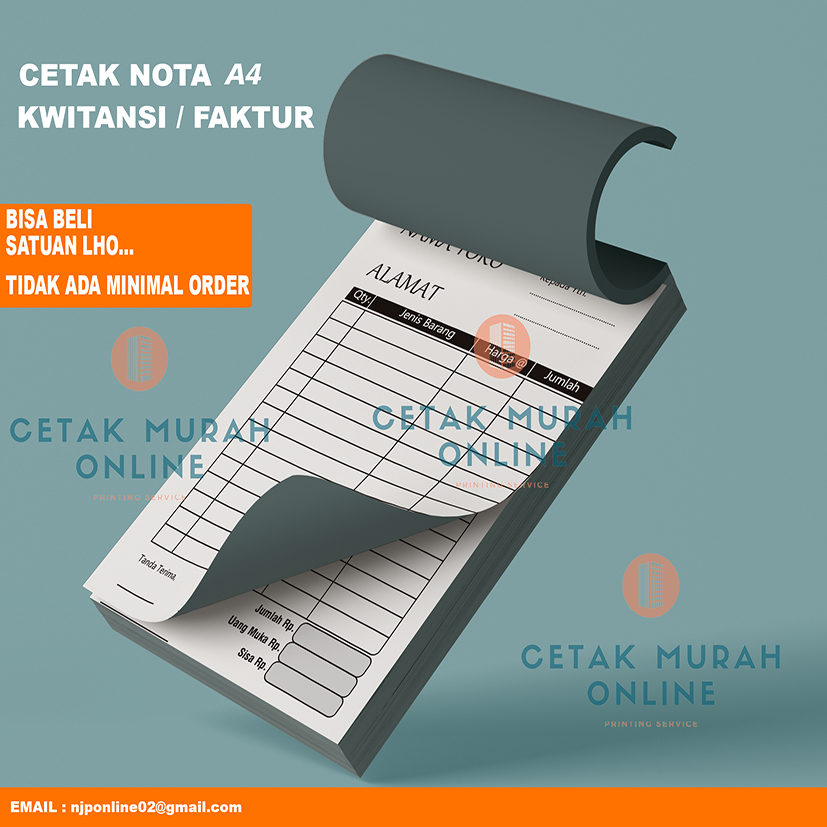 CETAK NOTA / KWITANSI / FAKTUR UKURAN A4 MURAH , BISA SATUAN !!