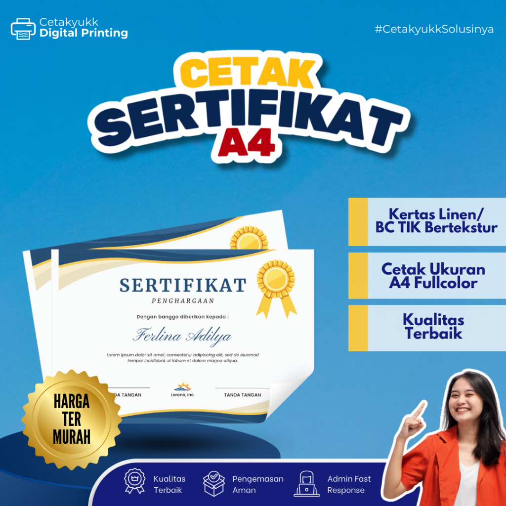 CETAK SERTIFIKAT UKURAN A4